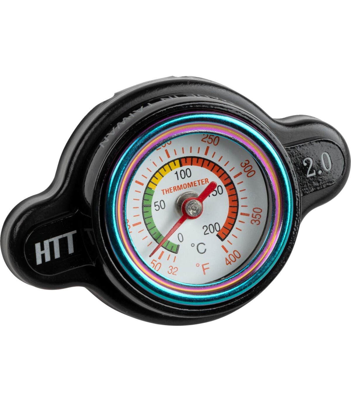 Radiator Cap with Temperature GaugeImproved radiator cap with a high performance design that includes a temperature gauge to easily monitor engine coolant temperaturesHigh-quality aluminum alloy, silicone rubber, and zinc materials increase durability avoiding the common issue of fatigue in the rubber and spring preventing water leakageBuilt-in thermometer that displays coolant temperatures in both Celsius and Fahrenheit promoting safety before removing the capDirect bolt-on for easy installation