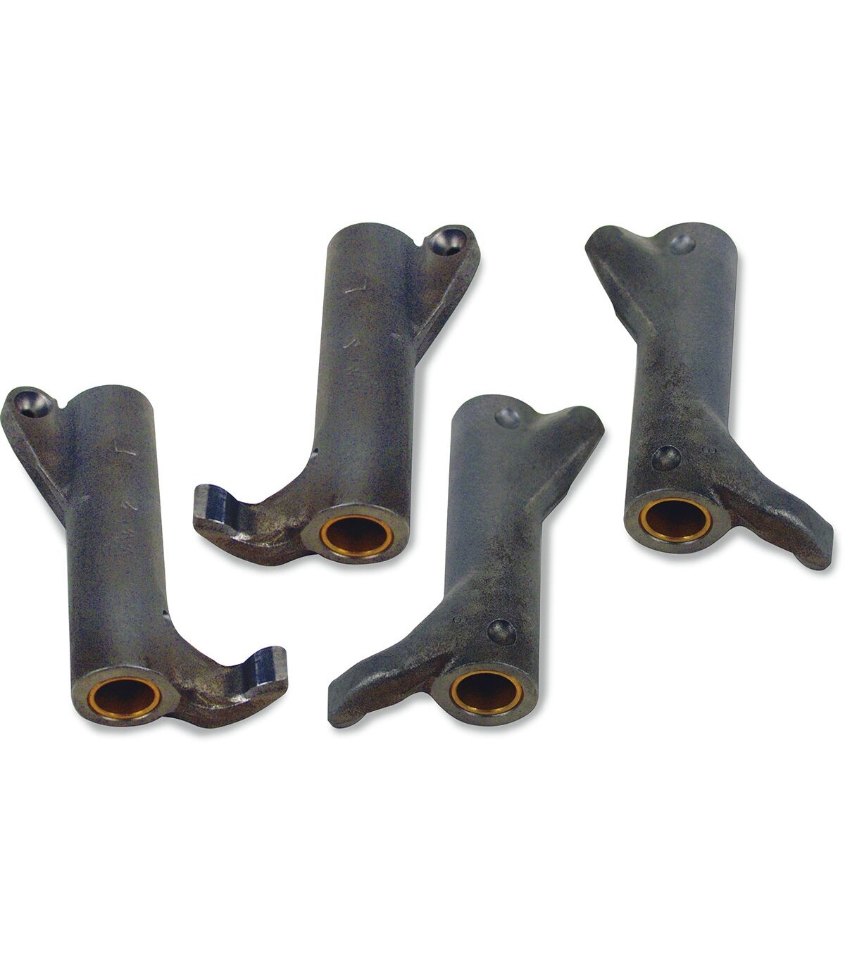 Forged Standard Rocker ArmsAn economical solution for stock rebuilds, and mild performance upgradesForged from 8620 steel for greater strength than stock or cast steelFeature the same .750" long rocker shaft bushings as S&S Roller Rockers: longer bushing provides 50% more load bearing area; eliminates the risk of engine damage associated with failed needle bearingsValve contact tips are induction hardened for extended durabilityRecommended for cams of .585" lift or lessSold in set containing two each of front and rear armsMade in the U.S.A.