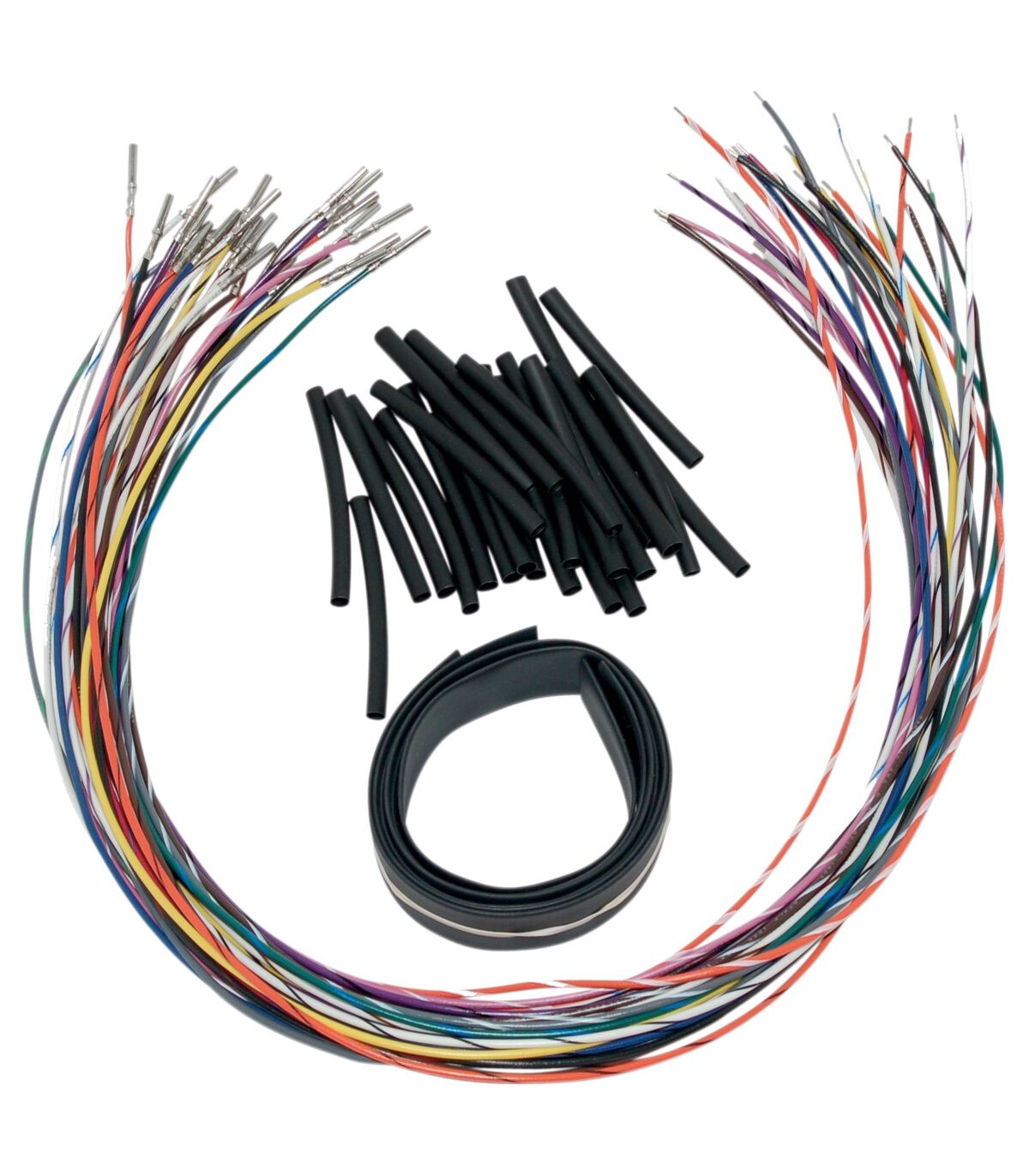 Extension universelle de câble pour contacteur de guidonConçus pour ceux qui préfèrent couper, décaler et souder pour prolonger leurs câbles avec un guidon plus hautLes câbles sont pré-dénudés, avec la cosse toujours en place pour éviter qu'ils ne s'effilochent, et l’autre extrémité dispose de raccords sertis par machine qui sont faciles à ré-installer dans le connecteur factoryTous les kits sont complets, avec des câbles assortis à ceux d'origine, ainsi que l’ensemble des gaines thermorétractables nécessaires pour faire du bon boulotFabrication aux États-Unis.