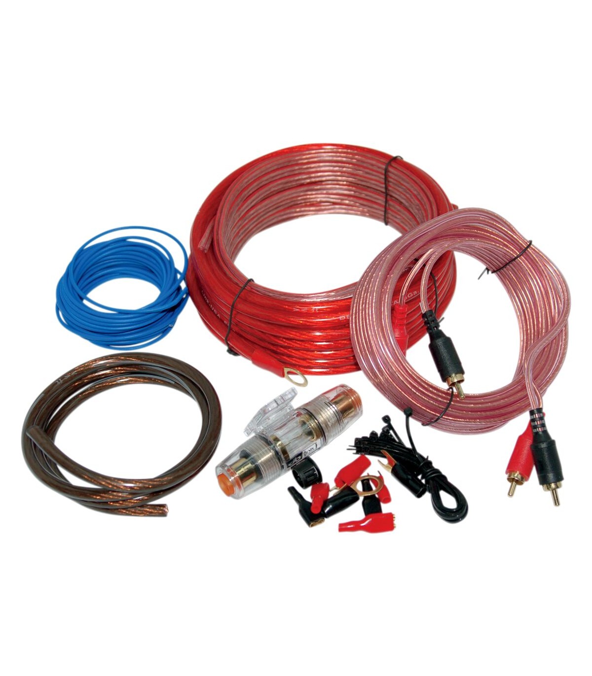 Kit d’installation d’amplificateur avec câble de calibre 8Ce kit comprend un câble d'alimentation rouge de calibre 8 de 17’, des câbles RCA de 3’ et 15’, un câble de mise à la terre noir de calibre 8 de 3’, un câble de télécommande bleu de calibre 18 de 17’ et un câble de haut-parleur de calibre 16 de 17’Il renferme en outre un porte-fusibles thermorésistant de type AGU, un fusible AGU de 50 ampères et une gaine annelée fendue de 15,24 cm avec attaches de câble et cosses à sertirIl peut tolérer jusqu’à 900 wattsFabrication aux États-Unis.