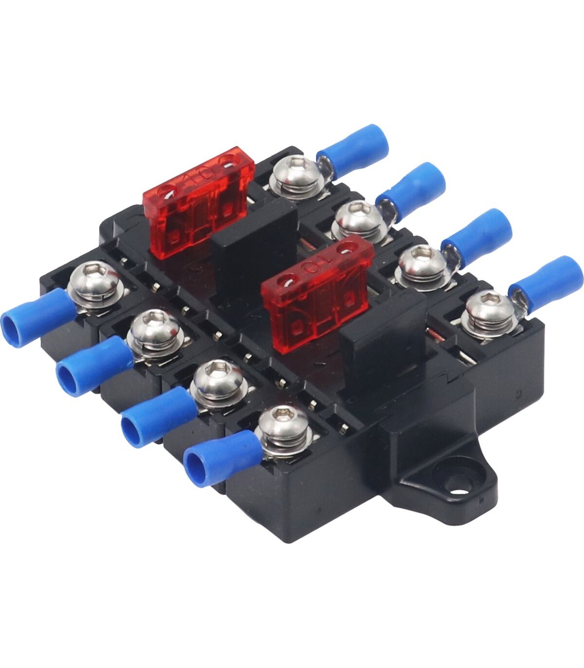 Modular Fuse Block4 pack of “stackable” fuse blocksMounting “legs” can easily be removed which allows additional fuse blocks to be attachedIncludes fuses, crimp connectors and stickers with symbols to easily identify circuits