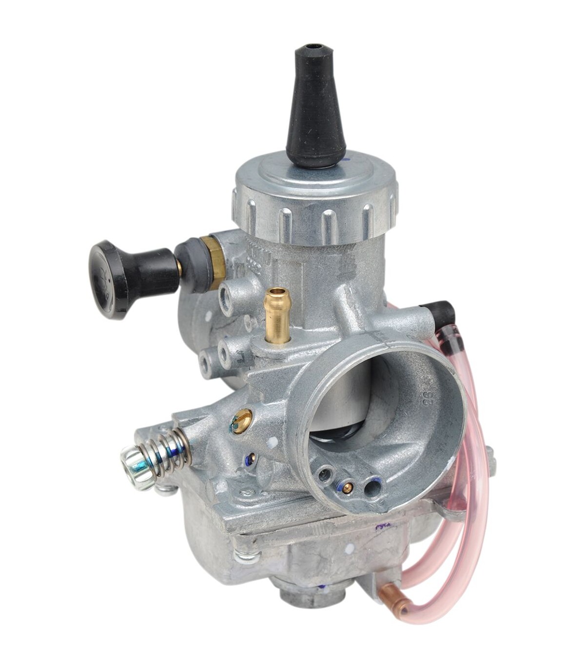 Carburateur à boisseau rond série VMLes vis d'ajustement et l'enrichisseur se trouvent sur le côté droit du carburateur, sauf mention contraireLa configuration à boisseau rond permet d'excellentes caractéristiques de débitUtiliser les gicleurs et pièces Mikuni pour des résultats optimauxFabrication au JaponMikuni VM26-606 - Dimensions : A = 35 mm, B = 93 mm, C = 122 mm, D = 44 mm, largeur totale = 82 mm