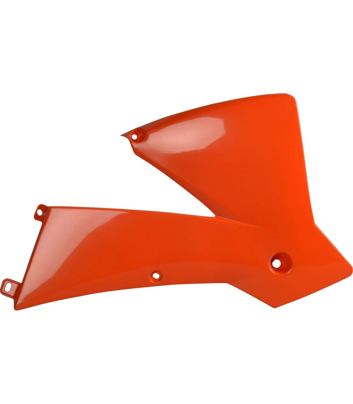 Radiator Covers For KTM IPD (in-mold plastic decals) and DGP(durable gloss propylene)Injection-molded, quality plastic components with a perfect OEM fitExact replica of stock OEM plastic components but strongerInexpensive alternative to OEM replacement partsStock color match with less fadeGlossy and flexibleImpact and abrasion resistantLess prone to scratching or marking
