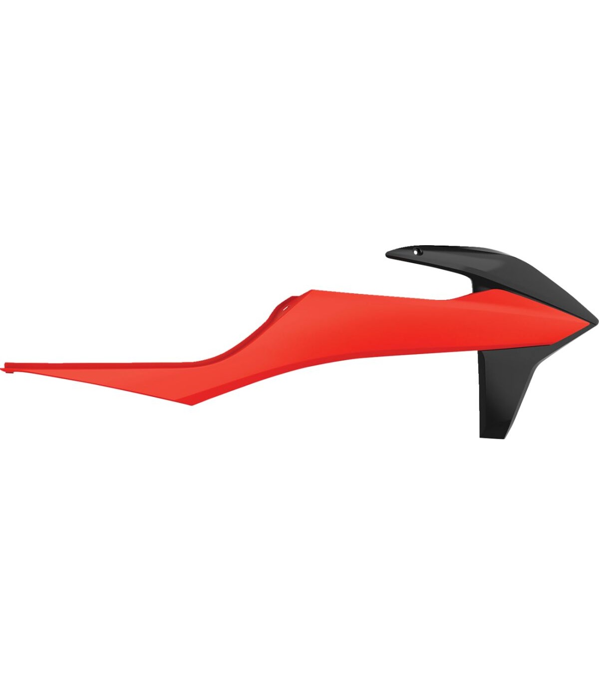 Radiator Covers For KTM IPD (in-mold plastic decals) and DGP(durable gloss propylene)Injection-molded, quality plastic components with a perfect OEM fitExact replica of stock OEM plastic components but strongerInexpensive alternative to OEM replacement partsStock color match with less fadeGlossy and flexibleImpact and abrasion resistantLess prone to scratching or marking