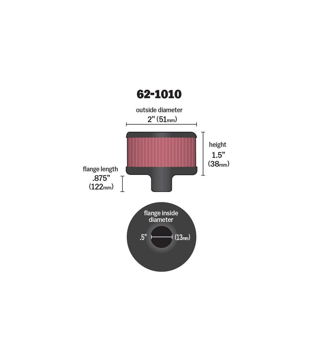 Filtres de mise à l'air moteurDoté d’une base en acier, d’un design en une seule pièce et d’une partie supérieure en chrome ou en caoutchouc noirDisponible avec ou sans vis de montageDimensions : 50,8 mm (2”) de diam. et 38,1 mm de H (11/2”)