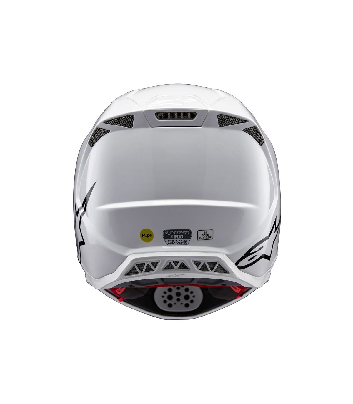 Supertech M10 Solid HelmetThe S-M10 shell sizing solution ensures each helmet fit size has its own appropriate shell size to deliver the most anatomical solution for the wide variety of fit needs, thus ensuring riders have the correct fit to improve comfort, reduce overall weight, and improve effectiveness of the helmet in an impact.Surface curvature promotes reduced friction on impact, allowing deflection and transfer of energy to protect the rider's head from direct force to the skull and referred to the neck and spinal column.The S-M10's design offers a smooth, attractive, aerodynamic profile which is streamlined and free of a y external channels and features that might act as a load point in an impact or compromise the overall integrity of the helmet's construction.Fitted with E-2, last generation of MIPS, integrated low friction layer designed to reduce rotational motion transferred to the brain from angled impacts to the head.Chin bar's base area specifically sculpted to give a relief section and raised to clear the collarbone.Soft EPS liner extends beyond the helmet shell itself and is covered by a flexible rubber compound providing a reduced chance of any sort of collarbone injury.A-Head Fitment System allows easy adjustment of the angle and height that the helmet sits on the head.Ultra-ventilated helmet with 28 individual intake and exhaust ports, not including the eye port, with 18 intakes and 10 exhausts.Eject technology includes the eject helmet removal system.Rotational acceleration and oblique impact performance.Removable side pads, made from a semi-soft polymer for added protection, provide contact area to help spread impact energy.Emergency Release System (ERS) Emergency Visor Release and Visor Extension provides protection.