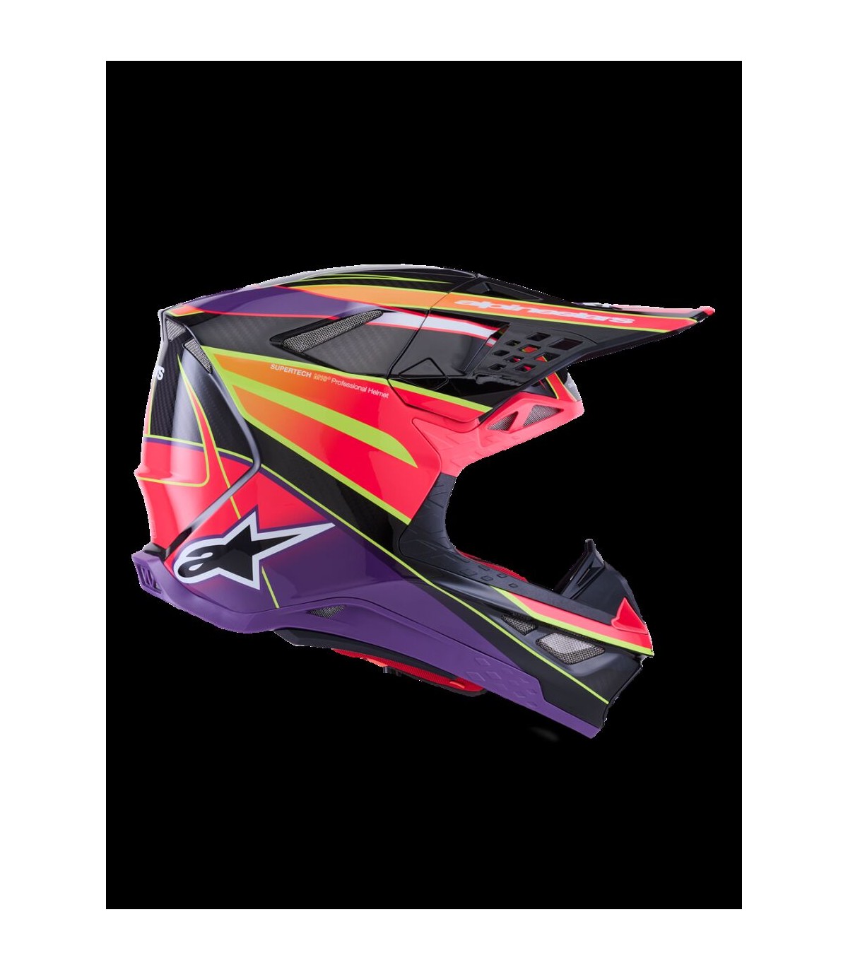 Supertech M10 Era MIPS® HelmetThe S-M10's design offers a smooth, attractive, aerodynamic profile which is streamlined and free of any external channels and features that might act as a load point in an impact or compromise the overall integrity of the helmet's constructionSurface curvature promotes reduced friction on impact, allowing deflection and transfer of energy to protect the rider's head from direct force to the skull and referred to the neck and spinal columnThe S-M10 shell sizing solution ensures each helmet fit size has its own appropriate shell size to deliver the most anatomical solution for the wide variety of fit needs, thus ensuring riders have the correct fit to improve comfort, reduce overall weight, and improve effectiveness of the helmet in an impactEquipped with MIPS® Multi-directional Impact Protection SystemChin bar's base area specifically sculpted to give a relief section and raised to clear the collarboneSoft EPS liner extends beyond the helmet shell itself and is covered by a flexible rubber compound providing a reduced chance of any sort of collarbone injuryA-Head Fitment System allows easy adjustment of the angle and height that the helmet sits on the headUltra-ventilated helmet with 28 individual intake and exhaust ports, not including the eye port, with 18 intakes and 10 exhaustsEject technology includes the eject helmet removal systemRotational acceleration and oblique impact performanceRemovable side pads, made from a semi-soft polymer for added protection, provide contact area to help spread impact energyEmergency Release System (ERS) Emergency Visor Release and Visor Extension provides protection
