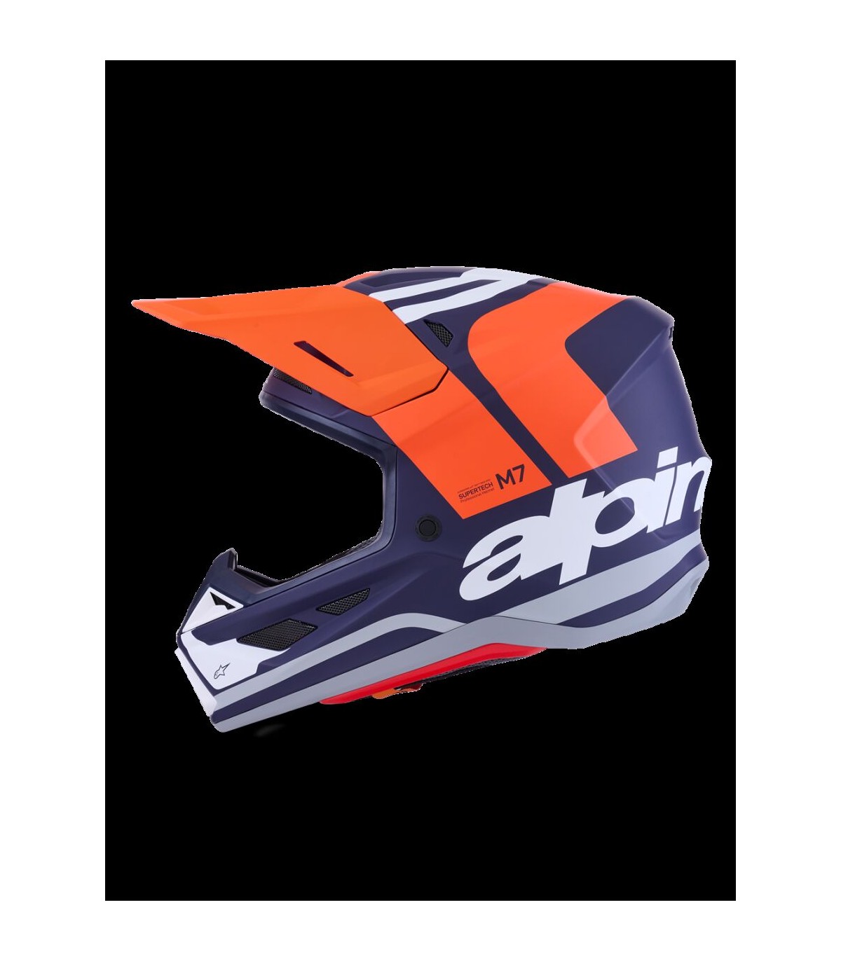 SM7 Core HelmetThe SM7 helmet is engineered for off-road racing combining impact protection and comfort.Outer shell composite construction is lightweight and durable.Outer shell's aerodynamic profile has been designed reduce friction on impact, allowing deflection and the most efficient transfer of energy to protect the rider's head from direct force, referred to the neck and spinal column.Thanks to 20 individual intake and exhaust ports, not including the eye port, with 13 intakes and 8 exhausts this helmet is ultra-ventilated. Patented visor detaching system is engineered to automatically detach visor from the shell when subjected to an impact energy greater than 15 joules for optimum impact protection, regardless of the direction.Alpinestars patented Plasma technology is strategically-integrated into the SM7's side pads for high performance shock absorption in critical area to reduce the risk of injuries significantly. Linings are removable and washable.The Cheek Pads are fitted 3D foam, with an emergency extraction system (ERS), with a channel for hydration tube installation. Cheek pads are interchangeable among all sizes.Crown Pad and the Neck Pad are elastically connected, for better oblique impact management.Top Pad is removable and adjustable in height thanks to the A-head system.Chin strap is fitted with a 25 mm width nylon strap, stainless steel DD rings, removable covers for washing purpose.Shell sizing solution ensures each helmet fit size has its own appropriate shell size to deliver the most anatomical fit.Three different helmet shell sizes M, L and XL, and 6 consumer sizes from XS to XXL to ensure correct fit. Improving comfort, effectiveness of the helmet in an impact and reducing overall weight.Fit can further be customized via Alpinestars genuine replacement cheekpads available in all thicknesses and are exchangeable between all shell sizes.Both sides have integrated channels to accommodate hydration system.Communication system compatible thanks to cutaway section on the left-side of the EPS to seamlessly accommodate Intercom Systems, with earphone recesses on both sides for speakers.