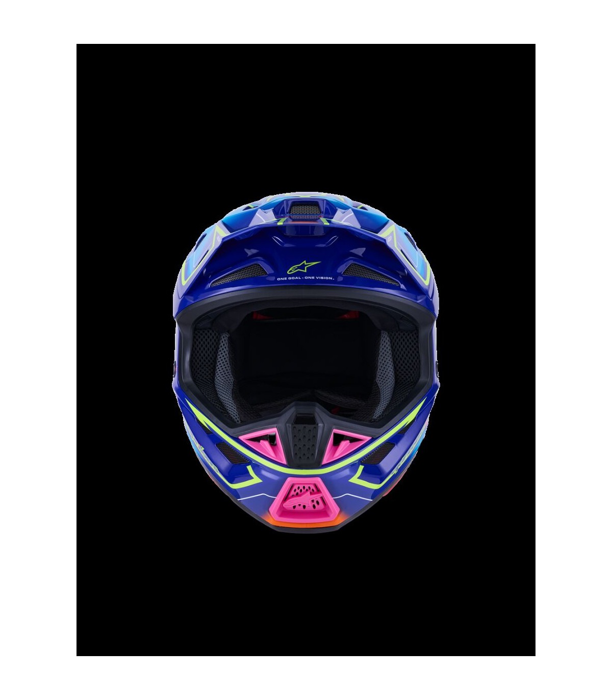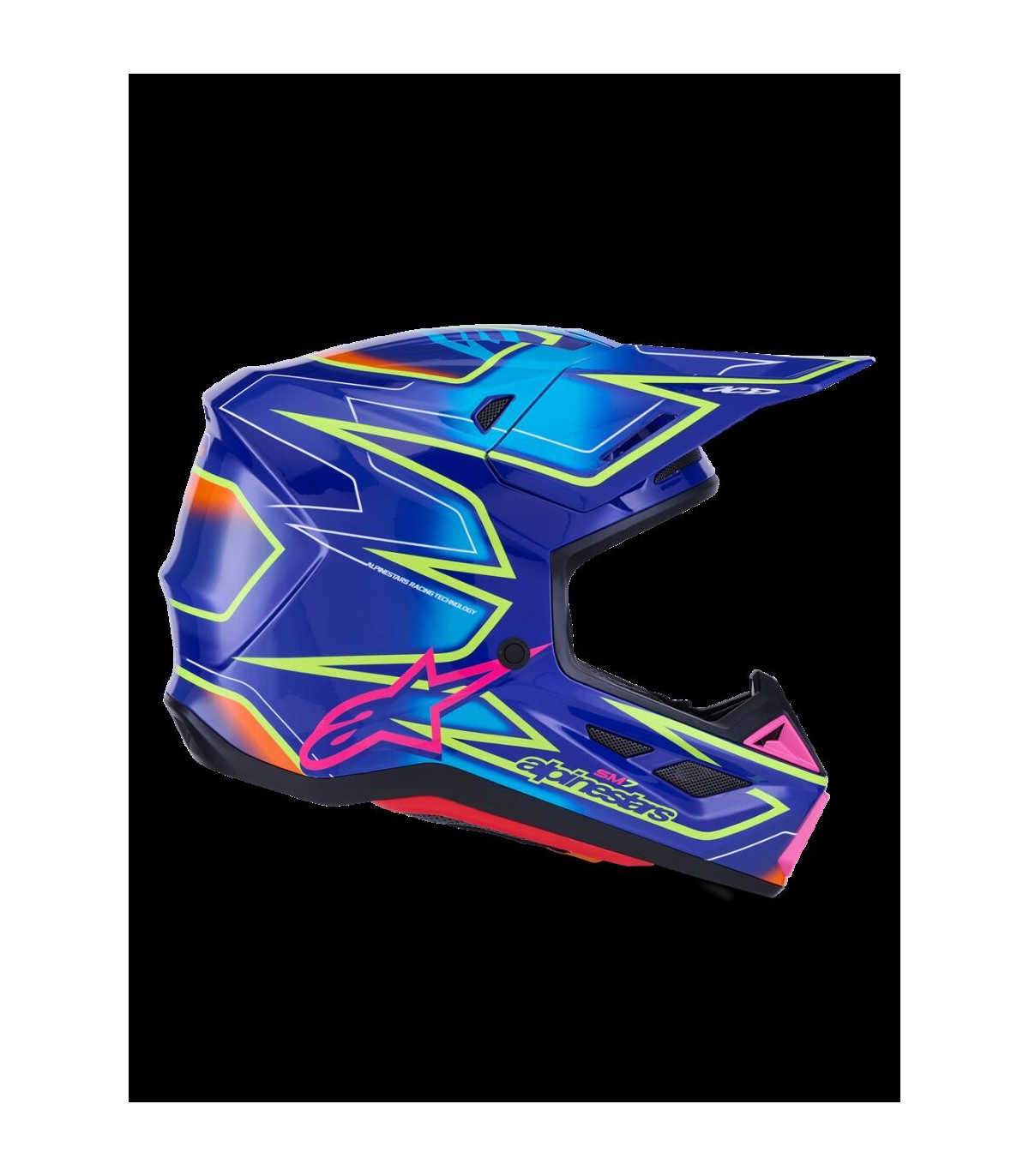 SM7 Cast HelmetThe SM7 helmet is engineered for off-road racing combining impact protection and comfort.Outer shell composite construction is lightweight and durable.Outer shell's aerodynamic profile has been designed reduce friction on impact, allowing deflection and the most efficient transfer of energy to protect the rider's head from direct force, referred to the neck and spinal column.Thanks to 20 individual intake and exhaust ports, not including the eye port, with 13 intakes and 8 exhausts this helmet is ultra-ventilated. Patented visor detaching system is engineered to automatically detach visor from the shell when subjected to an impact energy greater than 15 joules for optimum impact protection, regardless of the direction.Alpinestars patented Plasma technology is strategically-integrated into the SM7's side pads for high performance shock absorption in critical area to reduce the risk of injuries significantly. Linings are removable and washable.The Cheek Pads are fitted 3D foam, with an emergency extraction system (ERS), with a channel for hydration tube installation. Cheek pads are interchangeable among all sizes.Crown Pad and the Neck Pad are elastically connected, for better oblique impact management.Top Pad is removable and adjustable in height thanks to the A-head system.Chin strap is fitted with a 25 mm width nylon strap, stainless steel DD rings, removable covers for washing purpose.Shell sizing solution ensures each helmet fit size has its own appropriate shell size to deliver the most anatomical fit.Three different helmet shell sizes M, L and XL, and 6 consumer sizes from XS to XXL to ensure correct fit. Improving comfort, effectiveness of the helmet in an impact and reducing overall weight.Fit can further be customized via Alpinestars genuine replacement cheekpads available in all thicknesses and are exchangeable between all shell sizes.Both sides have integrated channels to accommodate hydration system.Communication system compatible thanks to cutaway section on the left-side of the EPS to seamlessly accommodate Intercom Systems, with earphone recesses on both sides for speakers.
