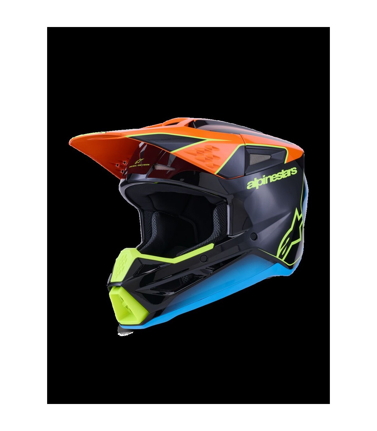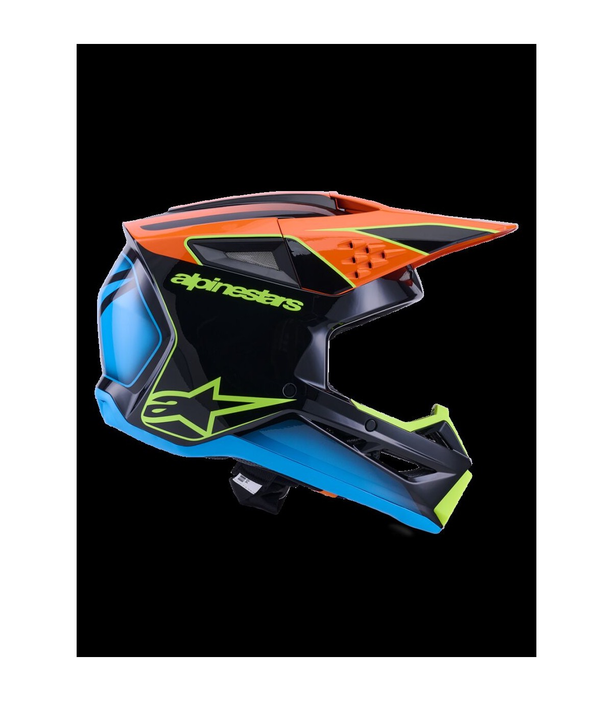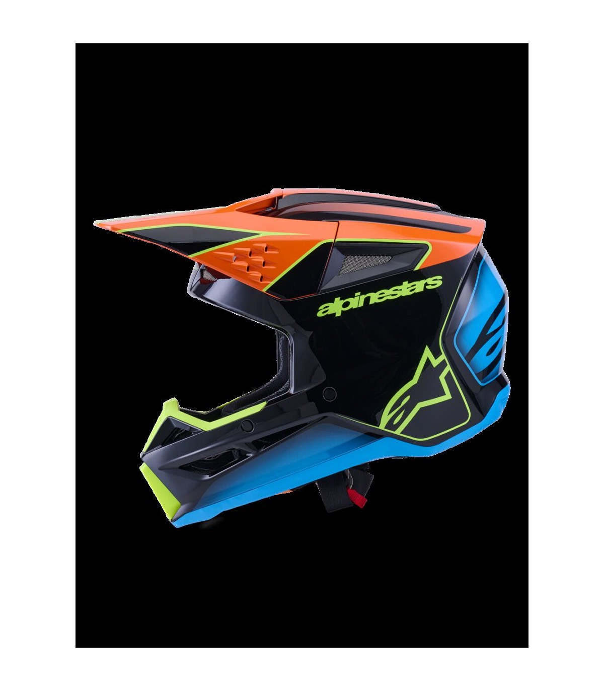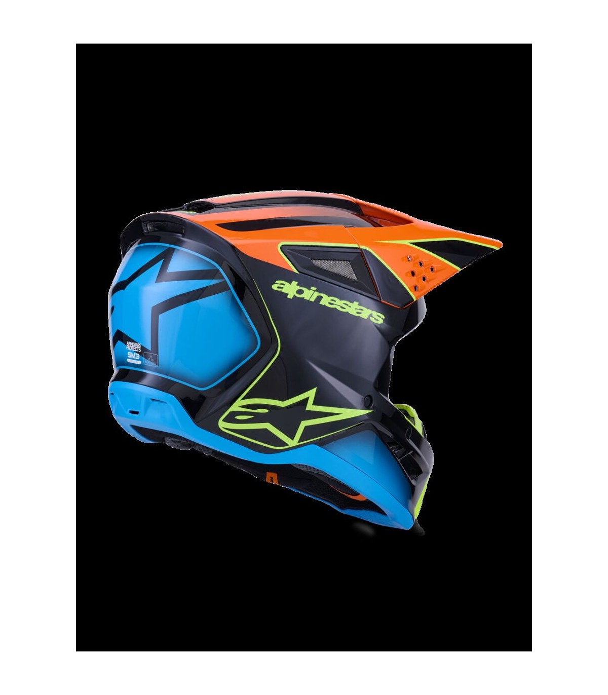 SM3 Fray HelmetThe S-M3 Helmet is engineered for MX, Enduro and Off-road use featuring innovations and technologies optimized for ease of use, comfort and impact performance.Shell construction featuring a thermo-injected shell incorporating a special polymer blend enhanced by varying degrees of thickness, engineered to deliver optimal combination of impact protection and light weight.Alpinestars patented innovative low friction coating is applied to inner part of the main EPS liner to reduce rotational acceleration forces that can result from certain oblique impacts. This layer acts as a slip plane to mimic the brain's own low friction cerebrospinal fluid, which is the body's natural defence against oblique impacts.Patented visor release system ensures visor release with correct pre-determined force, effectively reducing the forces on the neck during an impact.Maximised ventilation and high levels of heat transfer exchange thanks to 10 inlets and 7 exhaust ports.