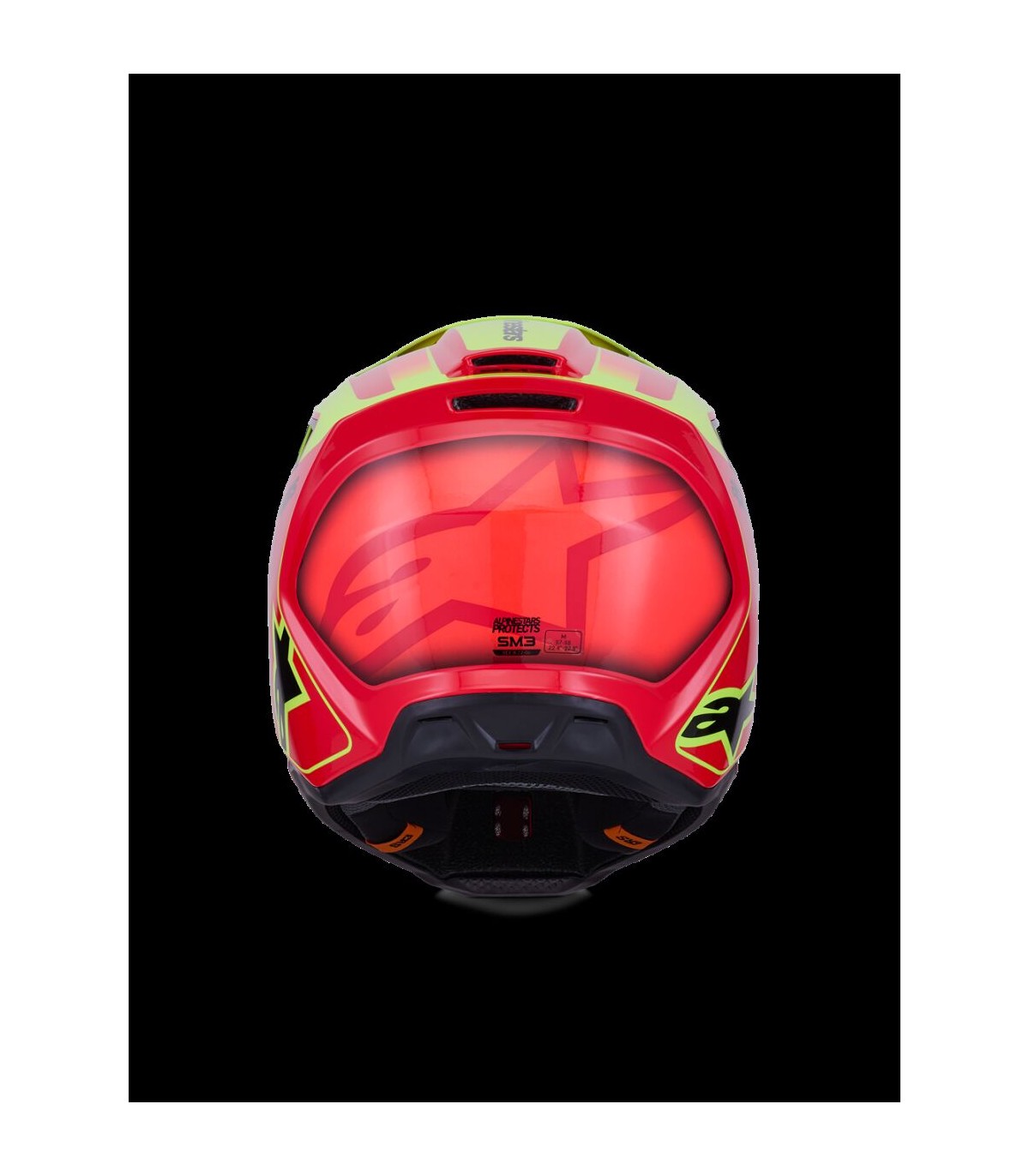 SM3 Fray HelmetThe S-M3 Helmet is engineered for MX, Enduro and Off-road use featuring innovations and technologies optimized for ease of use, comfort and impact performance.Shell construction featuring a thermo-injected shell incorporating a special polymer blend enhanced by varying degrees of thickness, engineered to deliver optimal combination of impact protection and light weight.Alpinestars patented innovative low friction coating is applied to inner part of the main EPS liner to reduce rotational acceleration forces that can result from certain oblique impacts. This layer acts as a slip plane to mimic the brain's own low friction cerebrospinal fluid, which is the body's natural defence against oblique impacts.Patented visor release system ensures visor release with correct pre-determined force, effectively reducing the forces on the neck during an impact.Maximised ventilation and high levels of heat transfer exchange thanks to 10 inlets and 7 exhaust ports.