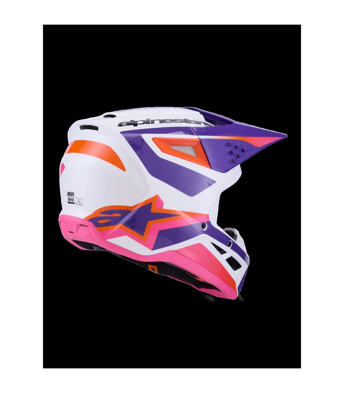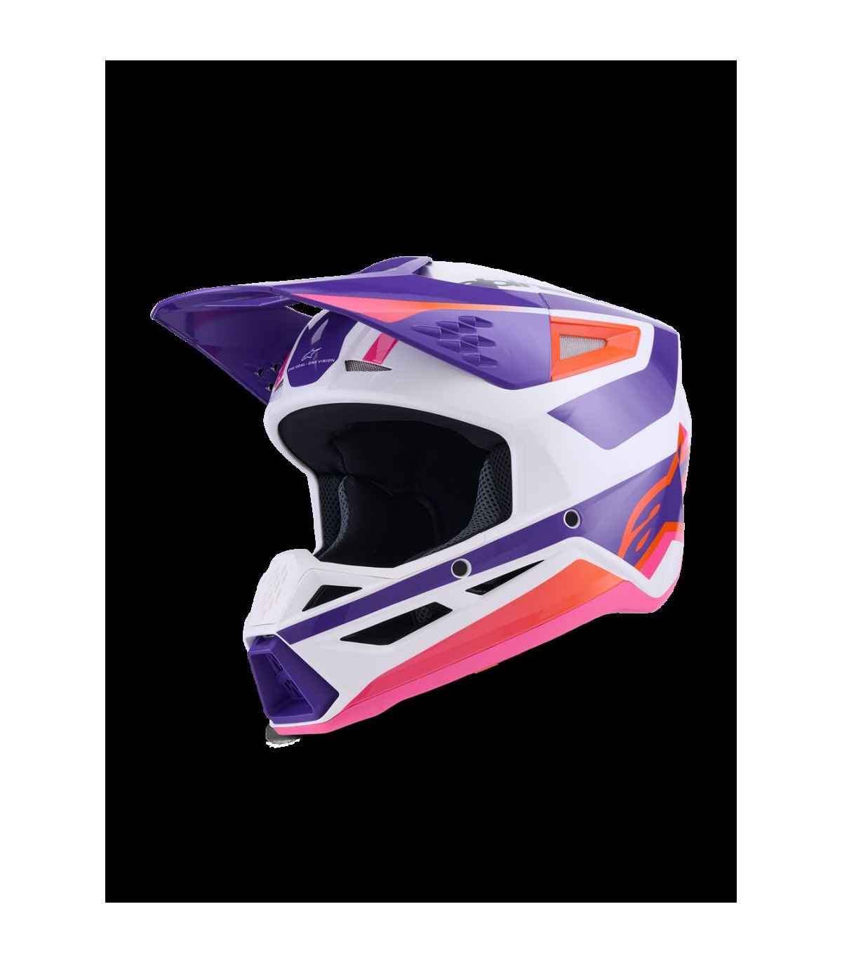 SM3 Heat HelmetThe S-M3 Helmet is engineered for MX, Enduro and Off-road use featuring innovations and technologies optimized for ease of use, comfort and impact performance.Shell construction featuring a thermo-injected shell incorporating a special polymer blend enhanced by varying degrees of thickness, engineered to deliver optimal combination of impact protection and light weight.Alpinestars patented innovative low friction coating is applied to inner part of the main EPS liner to reduce rotational acceleration forces that can result from certain oblique impacts. This layer acts as a slip plane to mimic the brain's own low friction cerebrospinal fluid, which is the body's natural defence against oblique impacts.Patented visor release system ensures visor release with correct pre-determined force, effectively reducing the forces on the neck during an impact.Maximised ventilation and high levels of heat transfer exchange thanks to 10 inlets and 7 exhaust ports.