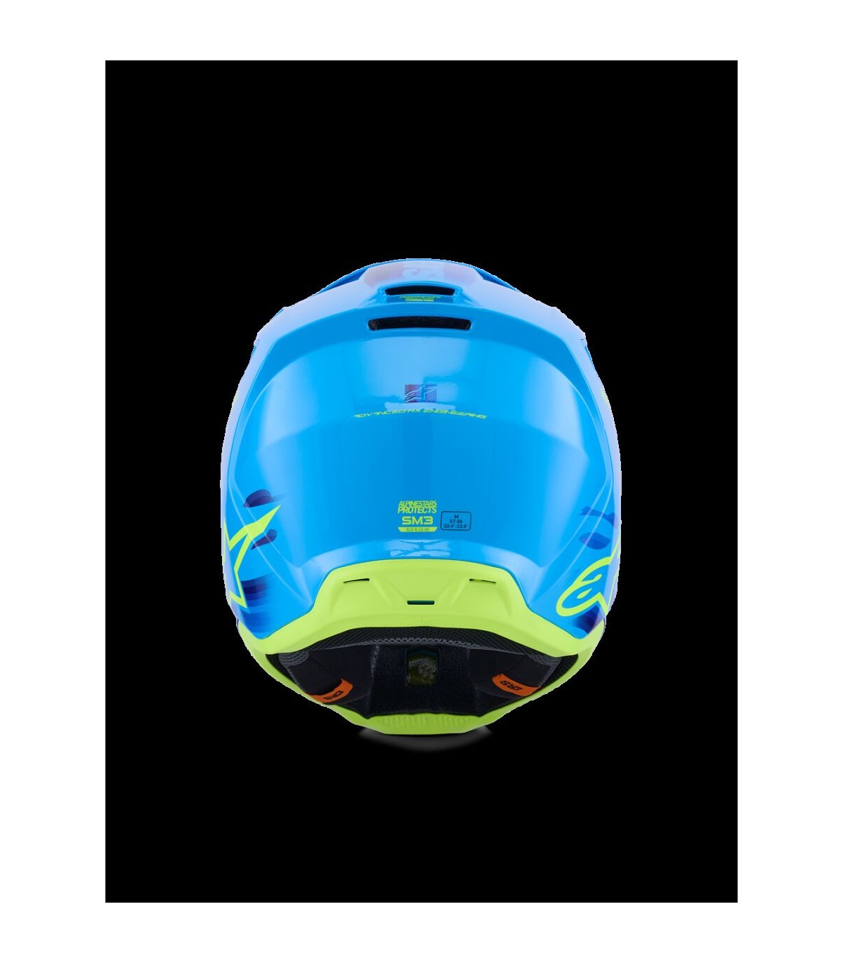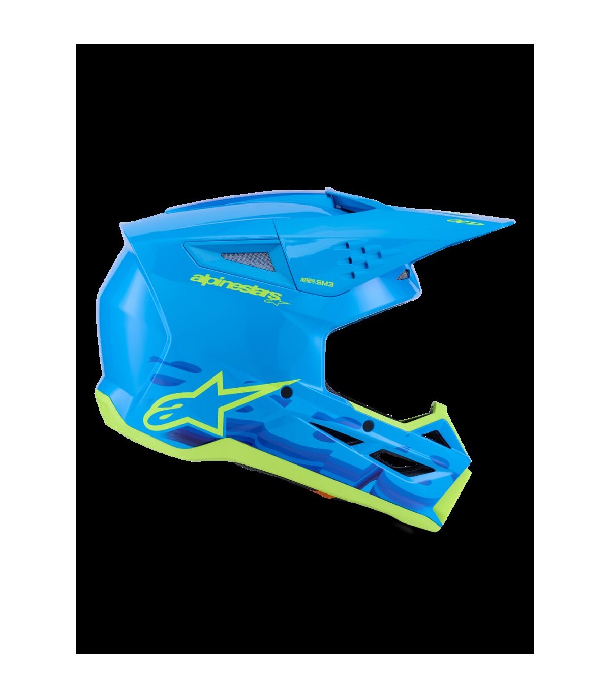 SM3 Force HelmetThe S-M3 Helmet is engineered for MX, Enduro and Off-road use featuring innovations and technologies optimized for ease of use, comfort and impact performance.Shell construction featuring a thermo-injected shell incorporating a special polymer blend enhanced by varying degrees of thickness, engineered to deliver optimal combination of impact protection and light weight.Alpinestars patented innovative low friction coating is applied to inner part of the main EPS liner to reduce rotational acceleration forces that can result from certain oblique impacts. This layer acts as a slip plane to mimic the brain's own low friction cerebrospinal fluid, which is the body's natural defence against oblique impacts.Patented visor release system ensures visor release with correct pre-determined force, effectively reducing the forces on the neck during an impact.Maximised ventilation and high levels of heat transfer exchange thanks to 10 inlets and 7 exhaust ports.