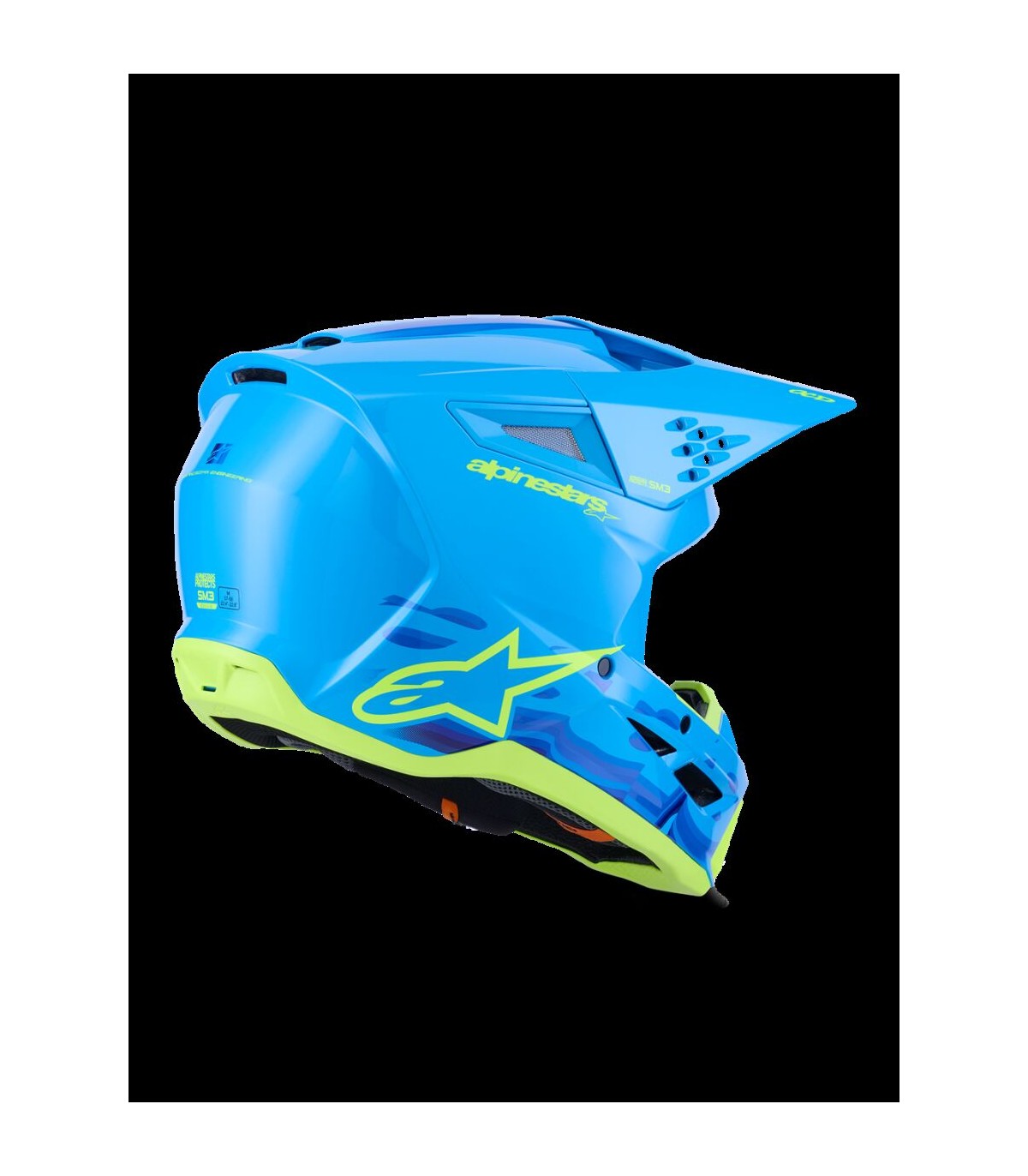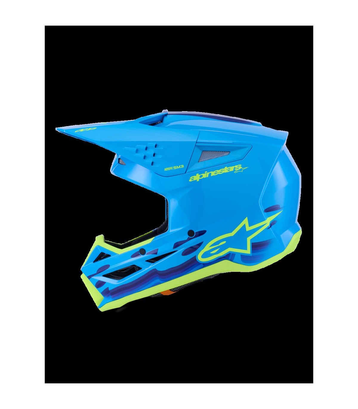 SM3 Force HelmetThe S-M3 Helmet is engineered for MX, Enduro and Off-road use featuring innovations and technologies optimized for ease of use, comfort and impact performance.Shell construction featuring a thermo-injected shell incorporating a special polymer blend enhanced by varying degrees of thickness, engineered to deliver optimal combination of impact protection and light weight.Alpinestars patented innovative low friction coating is applied to inner part of the main EPS liner to reduce rotational acceleration forces that can result from certain oblique impacts. This layer acts as a slip plane to mimic the brain's own low friction cerebrospinal fluid, which is the body's natural defence against oblique impacts.Patented visor release system ensures visor release with correct pre-determined force, effectively reducing the forces on the neck during an impact.Maximised ventilation and high levels of heat transfer exchange thanks to 10 inlets and 7 exhaust ports.