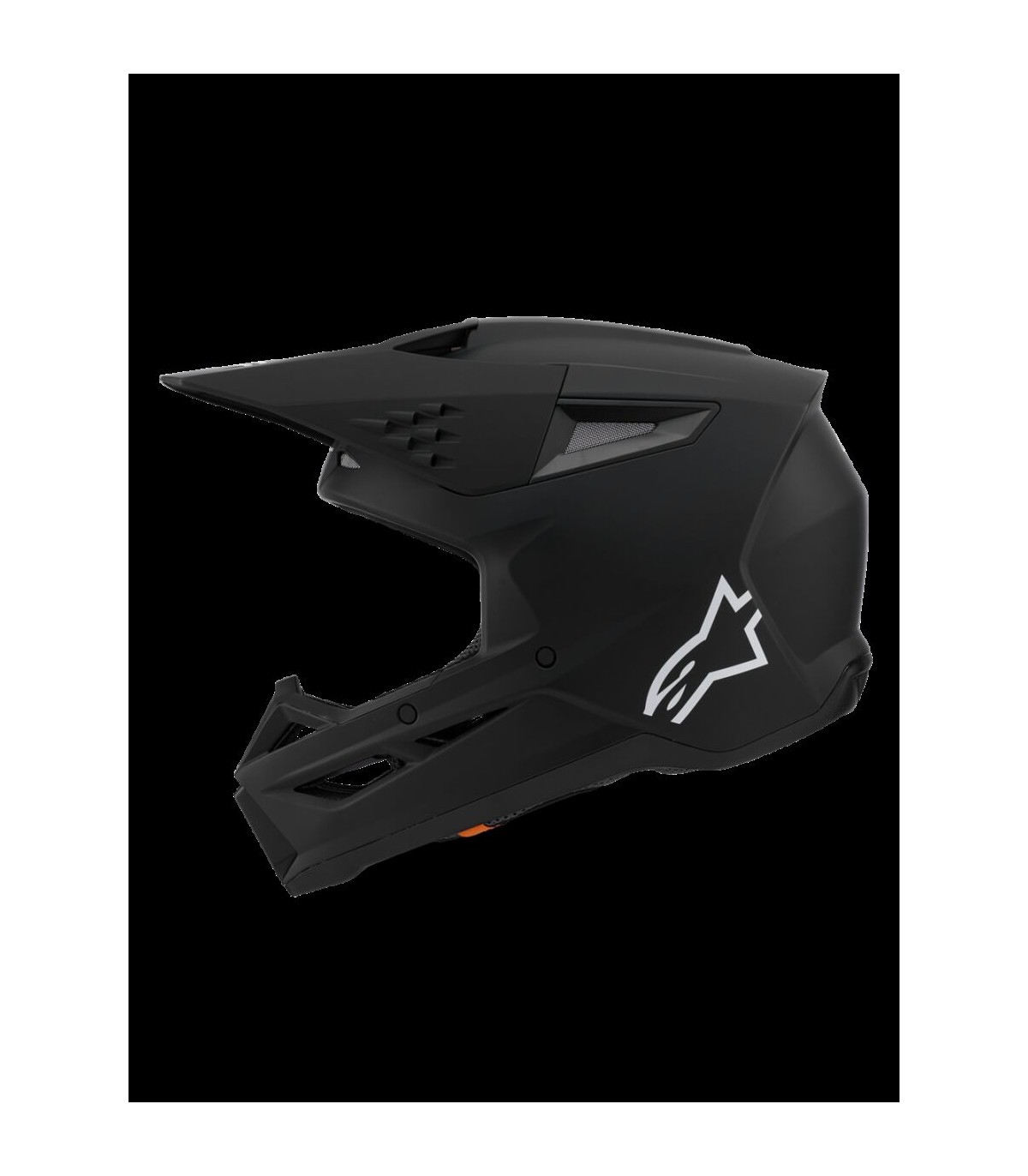 SM3 Solid HelmetThe S-M3 Helmet is engineered for MX, Enduro and Off-road use featuring innovations and technologies optimized for ease of use, comfort and impact performance.Shell construction featuring a thermo-injected shell incorporating a special polymer blend enhanced by varying degrees of thickness, engineered to deliver optimal combination of impact protection and light weight.Alpinestars patented innovative low friction coating is applied to inner part of the main EPS liner to reduce rotational acceleration forces that can result from certain oblique impacts. This layer acts as a slip plane to mimic the brain's own low friction cerebrospinal fluid, which is the body's natural defence against oblique impacts.Patented visor release system ensures visor release with correct pre-determined force, effectively reducing the forces on the neck during an impact.Maximised ventilation and high levels of heat transfer exchange thanks to 10 inlets and 7 exhaust ports.