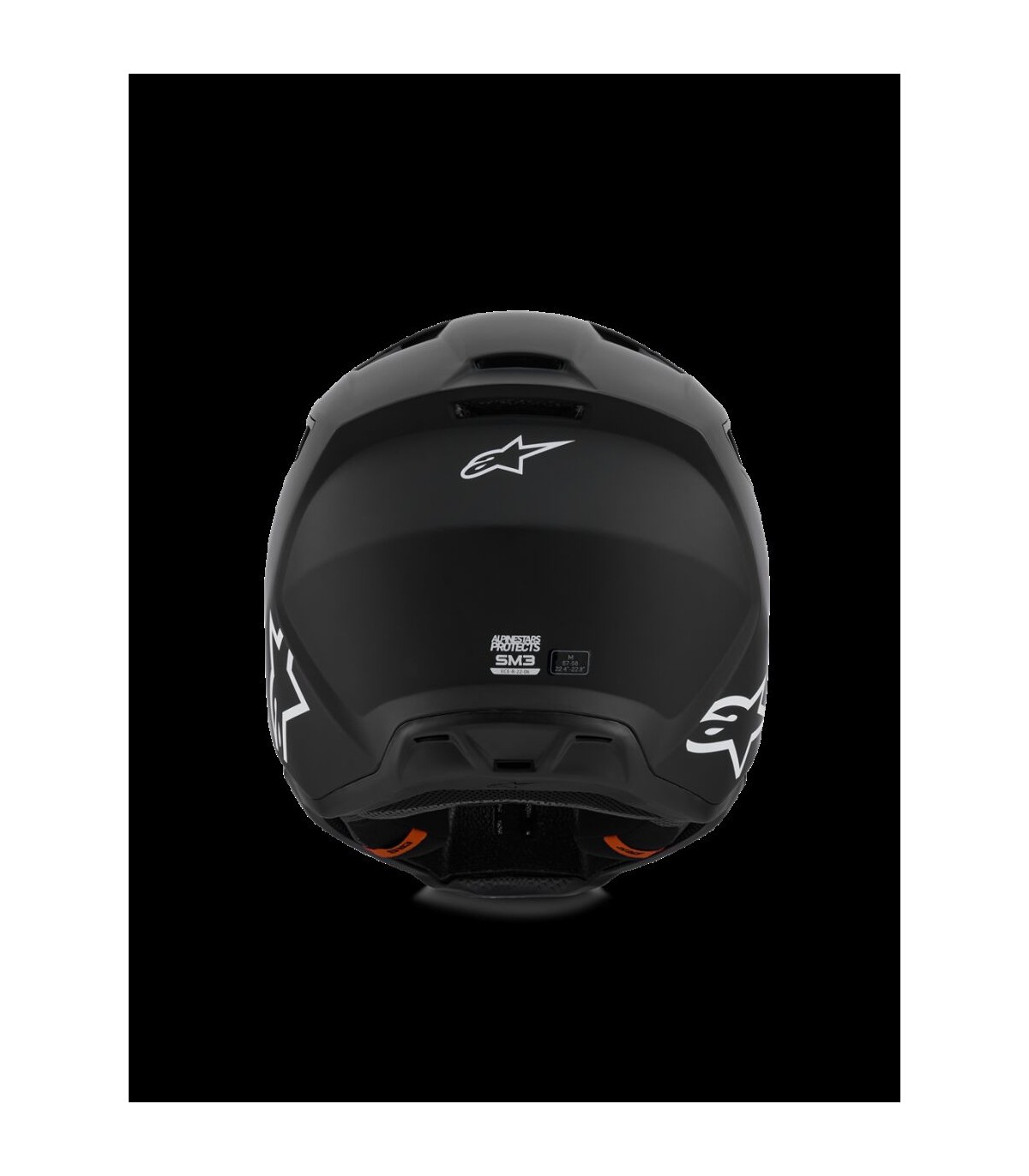 SM3 Solid HelmetThe S-M3 Helmet is engineered for MX, Enduro and Off-road use featuring innovations and technologies optimized for ease of use, comfort and impact performance.Shell construction featuring a thermo-injected shell incorporating a special polymer blend enhanced by varying degrees of thickness, engineered to deliver optimal combination of impact protection and light weight.Alpinestars patented innovative low friction coating is applied to inner part of the main EPS liner to reduce rotational acceleration forces that can result from certain oblique impacts. This layer acts as a slip plane to mimic the brain's own low friction cerebrospinal fluid, which is the body's natural defence against oblique impacts.Patented visor release system ensures visor release with correct pre-determined force, effectively reducing the forces on the neck during an impact.Maximised ventilation and high levels of heat transfer exchange thanks to 10 inlets and 7 exhaust ports.