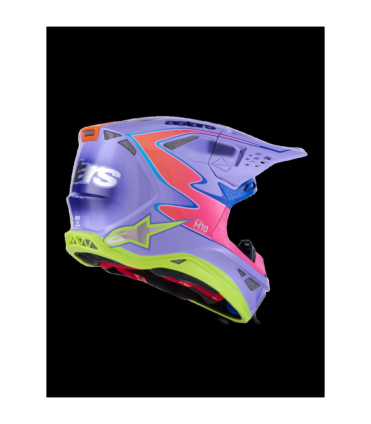 Supertech M10 Jett MIPS® HelmetThe S-M10's design offers a smooth, attractive, aerodynamic profile which is streamlined and free of any external channels and features that might act as a load point in an impact or compromise the overall integrity of the helmet's constructionSurface curvature promotes reduced friction on impact, allowing deflection and transfer of energy to protect the rider's head from direct force to the skull and referred to the neck and spinal columnThe S-M10 shell sizing solution ensures each helmet fit size has its own appropriate shell size to deliver the most anatomical solution for the wide variety of fit needs, thus ensuring riders have the correct fit to improve comfort, reduce overall weight, and improve effectiveness of the helmet in an impactChin bar's base area specifically sculpted to give a relief section and raised to clear the collarboneSoft EPS liner extends beyond the helmet shell itself and is covered by a flexible rubber compound providing a reduced chance of any sort of collarbone injuryA-Head Fitment System allows easy adjustment of the angle and height that the helmet sits on the headUltra-ventilated helmet with 28 individual intake and exhaust ports, not including the eye port, with 18 intakes and 10 exhaustsEquipped with MIPS Multi-directional Impact Protection System.Eject technology includes the eject helmet removal systemRotational acceleration and oblique impact performanceRemovable side pads, made from a semi-soft polymer for added protection, provide contact area to help spread impact energyEmergency Release System (ERS) Emergency Visor Release and Visor Extension provides protection