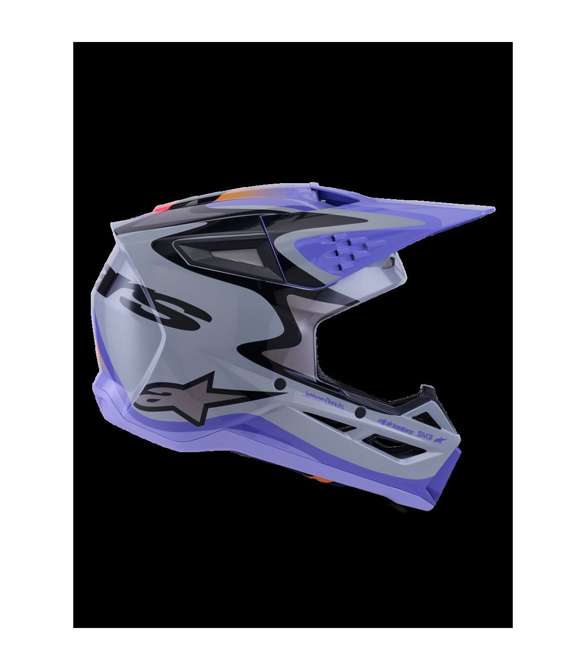 Youth SM3 Jettson HelmetThe S-M3 Helmet is engineered for MX, Enduro and Off-road use featuring innovations and technologies optimized for ease of use, comfort and impact performance.Shell construction featuring a thermo-injected shell incorporating a special polymer blend enhanced by varying degrees of thickness, engineered to deliver optimal combination of impact protection and light weight.Alpinestars patented innovative low friction coating is applied to inner part of the main EPS liner to reduce rotational acceleration forces that can result from certain oblique impacts. This layer acts as a slip plane to mimic the brain's own low friction cerebrospinal fluid, which is the body's natural defence against oblique impacts.Patented visor release system ensures visor release with correct pre-determined force, effectively reducing the forces on the neck during an impact.Maximised ventilation and high levels of heat transfer exchange thanks to 10 inlets and 7 exhaust ports.