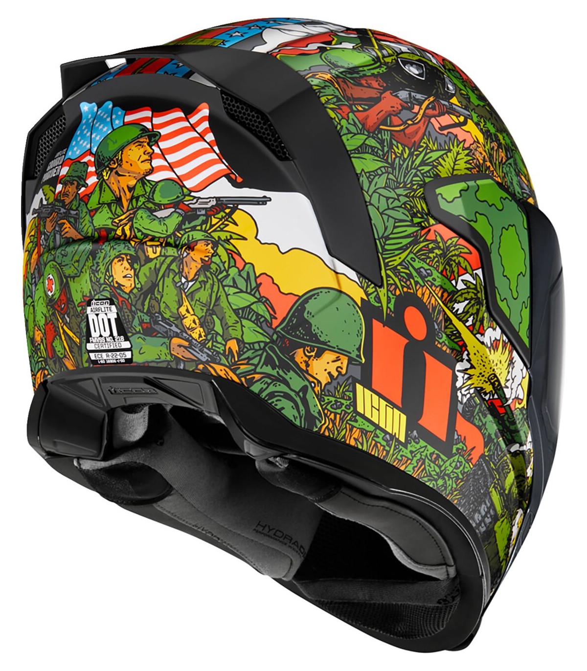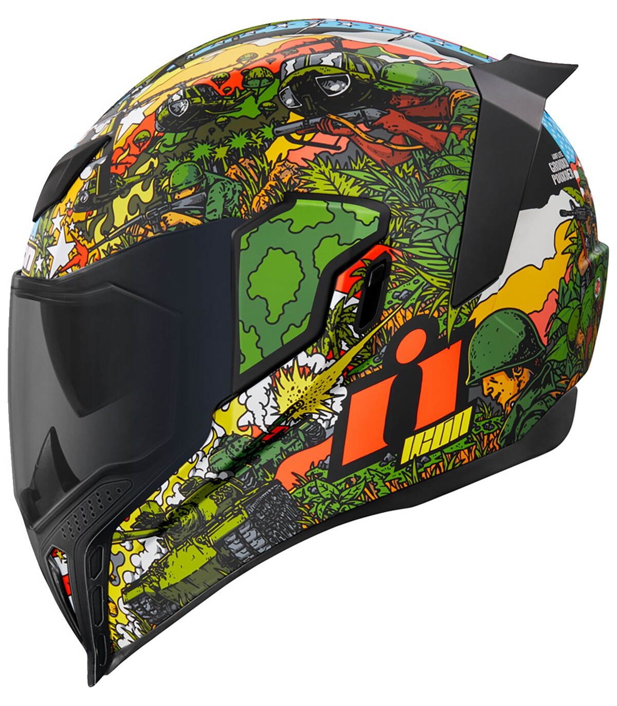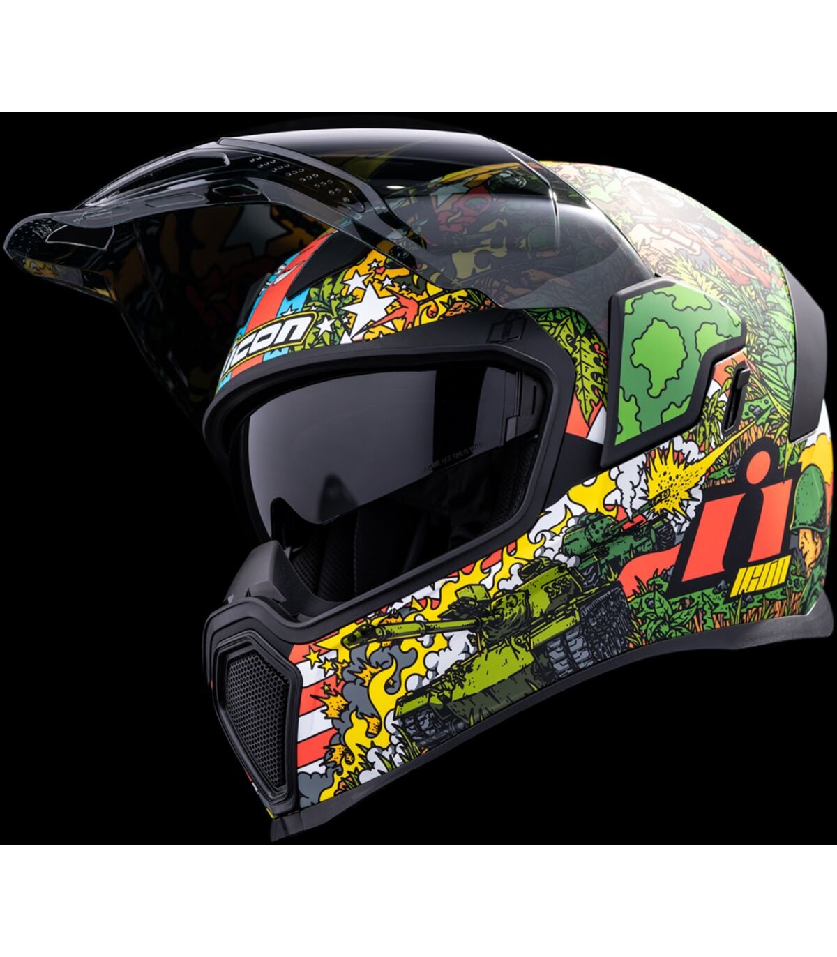 Airflite™ GP23 HelmetQuick-change Fog-Free Fliteshield™ with sideplatesInjection molded polycarbonate shell for strengthMultiple oversized intake and exhaust portsFog-Free Dropshield™ with exterior switchRemovable molded breath deflector and chin curtainRecessed twin channel supervent cooling systemInternal speaker pockets work with ICON's R.A.U. Bluetooth deviceThe Dropshield™ visor must only be used while the main face shield is in the fully closed positionRemovable Hydradry™ moisture wicking linerIncludes Clear Fliteshield™ & Dark Smoke Forceshield™Includes Dark Smoke Dropshield™