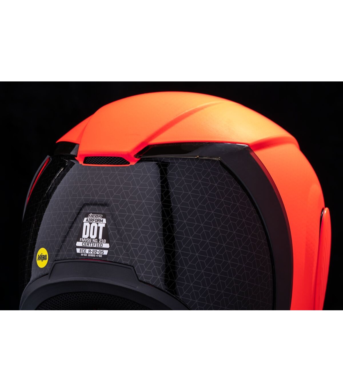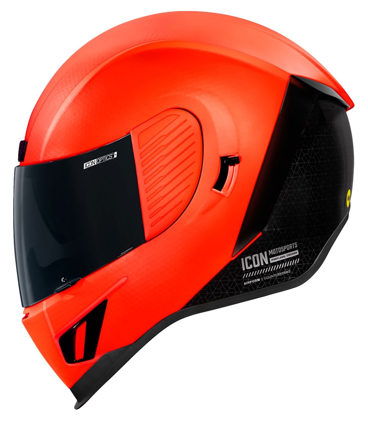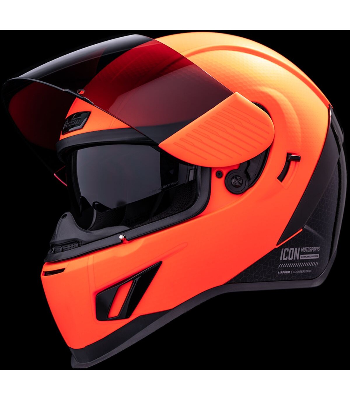 Airform™ Counterstrike MIPS® HelmetInjection molded polycarbonate shell for strengthProlock™ positive shield locking systemContinuous venting systemFog-free ICON Optics™ Shield with Rapid-Release™ SystemSculpted neck rollInternal airflow geometryInternal Dropshield™ with exterior switchThe Dropshield™ visor must only be used while the main face shield is in the fully closed positionRemovable molded breath deflectorRemovable Hydradry™ 3-piece moisture wicking linerInternal speaker pockets work with ICON's R.A.U. Bluetooth deviceIncludes Clear & Dark Smoke ICON Optics™ ShieldIncludes Dark Smoke Dropshield™Includes Black Airform Chin Vent™