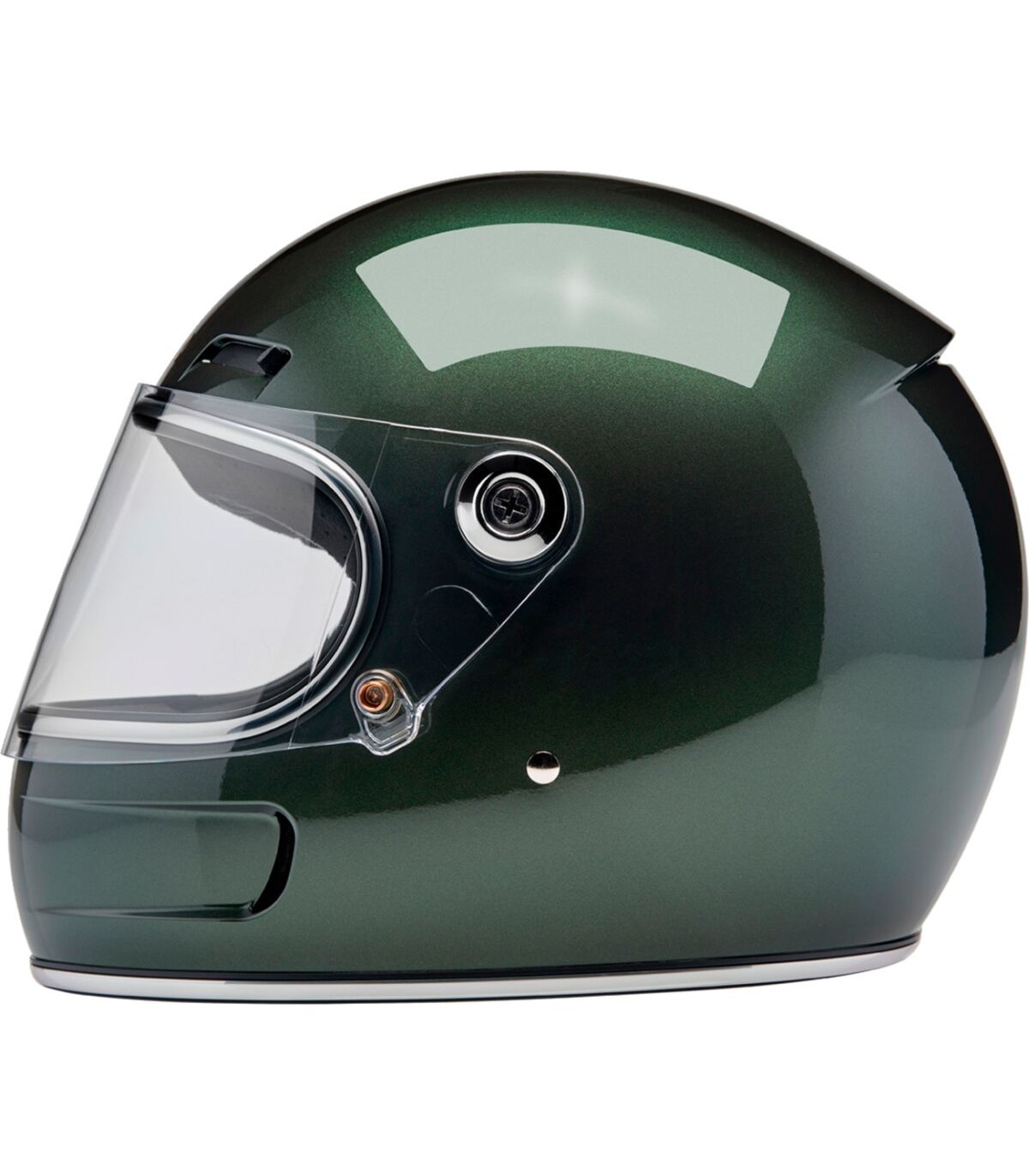 Gringo SV HelmetInjection-molded ABS outer shell is lightweight and highly resistant to impactsEvolutionary Gringo S shell styling features front, side, and rear vent ports to improve interior airflow, moisture dissipation, and coolingDual Density expanded polystyrene (EPS) internal safety shell absorbs and dissipates impact energy without compromising comfortAdjustable vents above the eye port let you regulate internal airflow to cool and dry your headMolded urethane chin bar pad dissipates energy during front impactChin strap features brushed fleece Lycra touchpoints for comfort, and a D-ring retention system with red quick-release pull tab for speedy removalInjection-molded polycarbonate shield features anti-fog and anti-scratch treatments for durability and safetyRugged hinge hardware with robust detents allows you to ride with the shield open at slow speeds to increase cooling airflowAnodized aluminum washers and stainless-steel hinge screws can be swapped with different colors and finishes to personalize the look of your helmet (hinge hardware sets available separately)Removable/replaceable comfort liner and cheek pads are constructed with fleece Lycra and open-cell foam padding to absorb and evaporate perspirationThe BioFoam head form panel and ventilated polyester padding maximize airflow around your head to ensure coolness and comfortMolded EPS ear pockets fit select aftermarket audio accessories