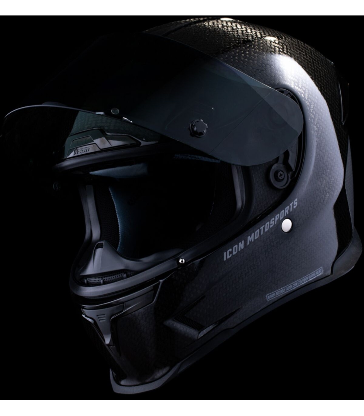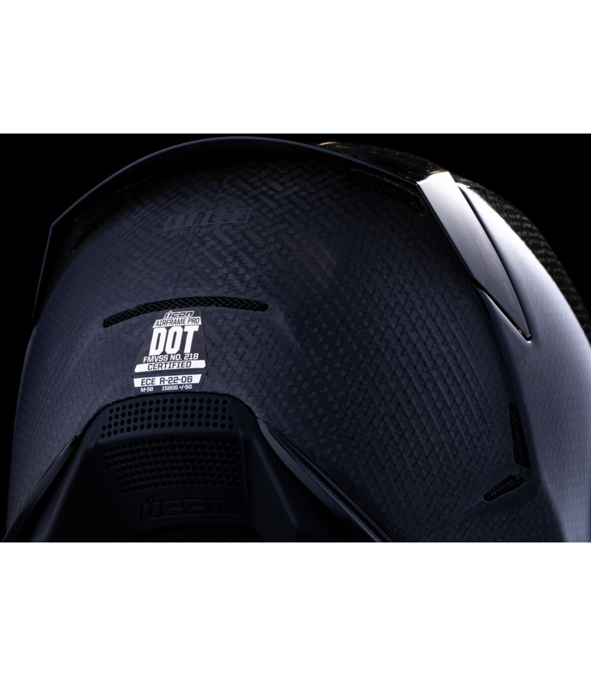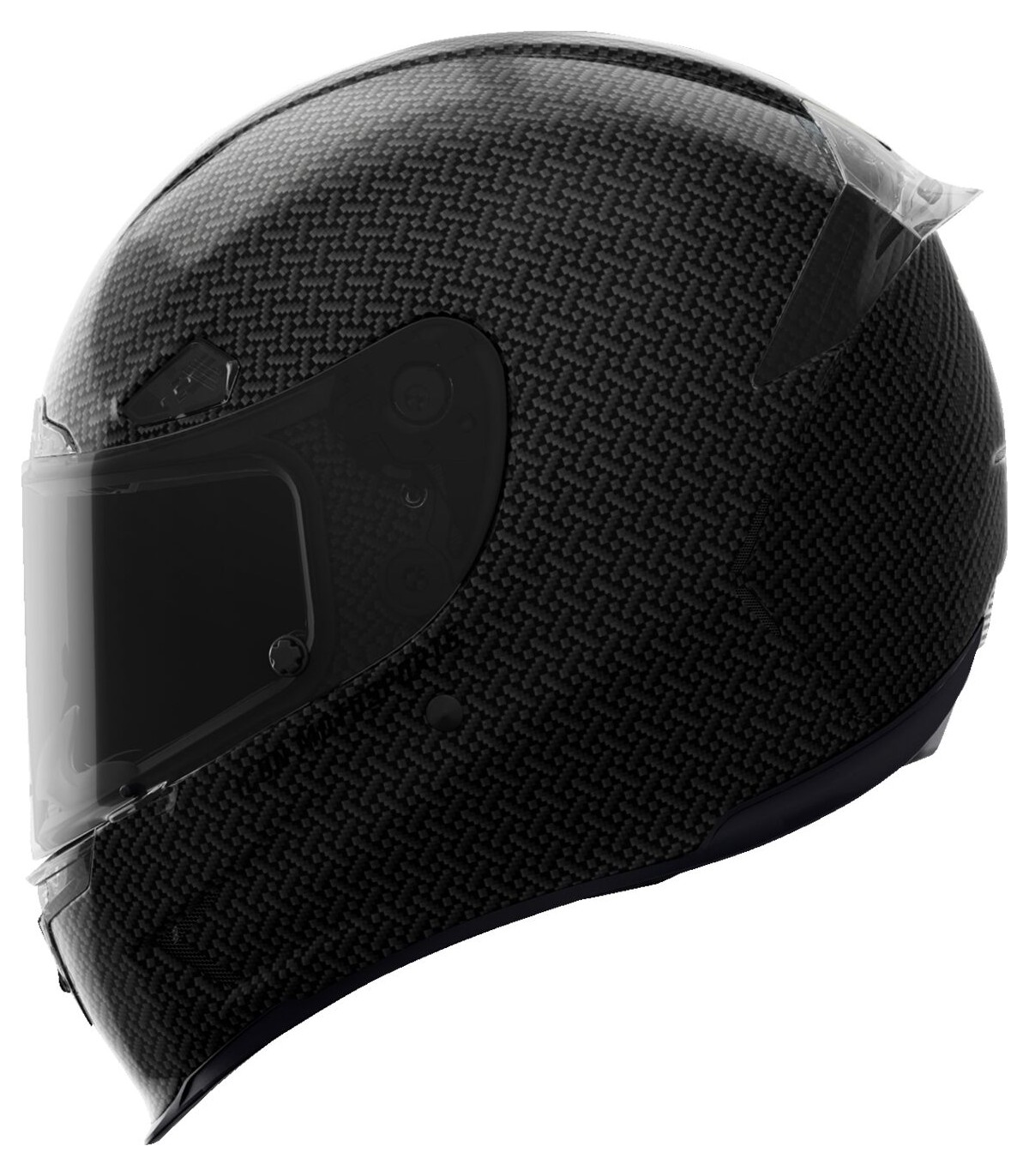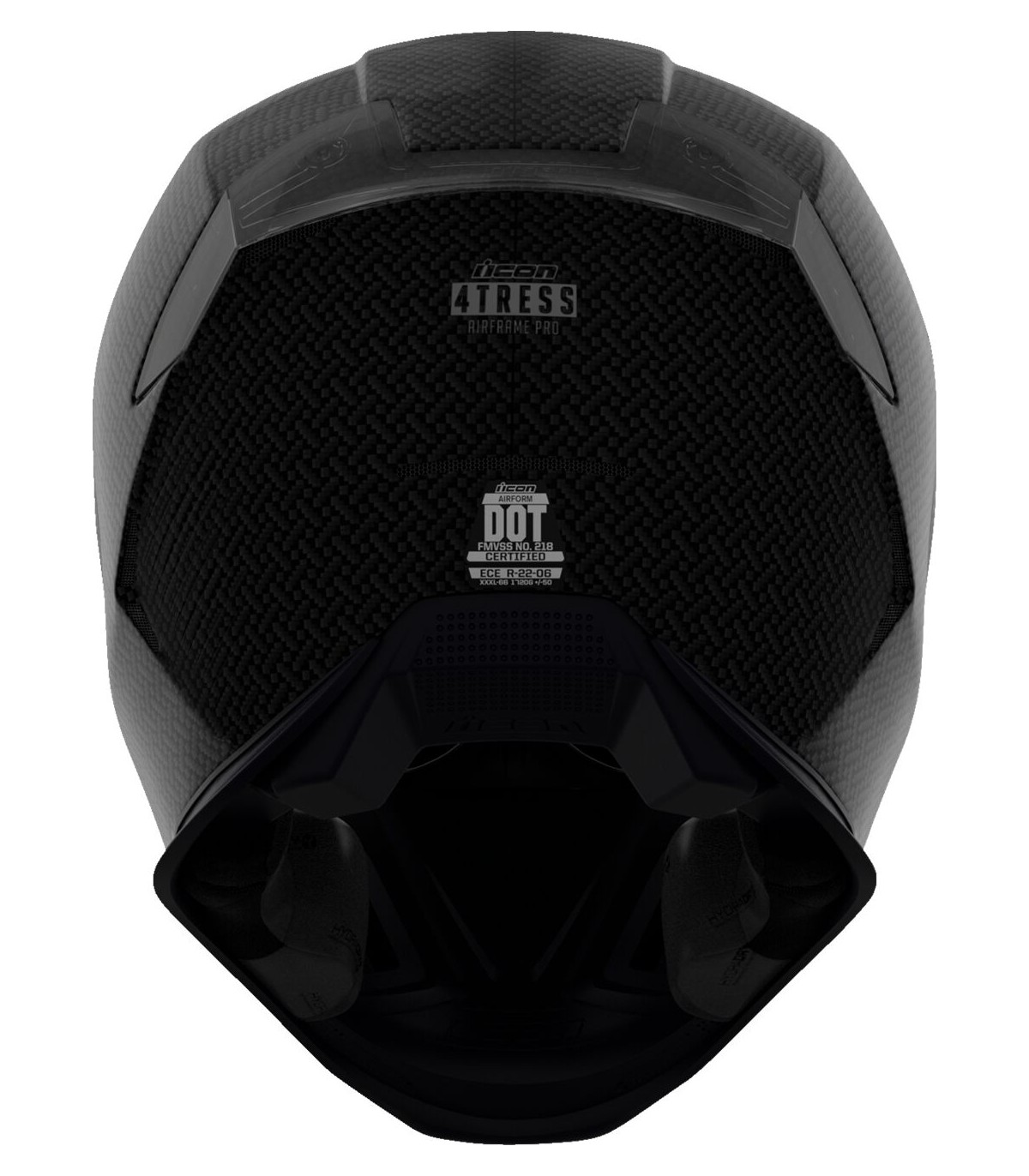 Airframe Pro™ Carbon 4Tress HelmetHandcrafted composite carbon fiber shellSculpted neck roll reduces jacket/suit interferenceFive-piece modular liner with moisture-wicking Hydradry™Linear ported forehead ventsLow-profile vents throughout the shellFog-free ICON Optics™ Shield with Rapid-Release™ systemProlock™ positive shield locking systemRemovable breath deflector and chin curtainIncludes Dark Smoke & Clear TracShields™