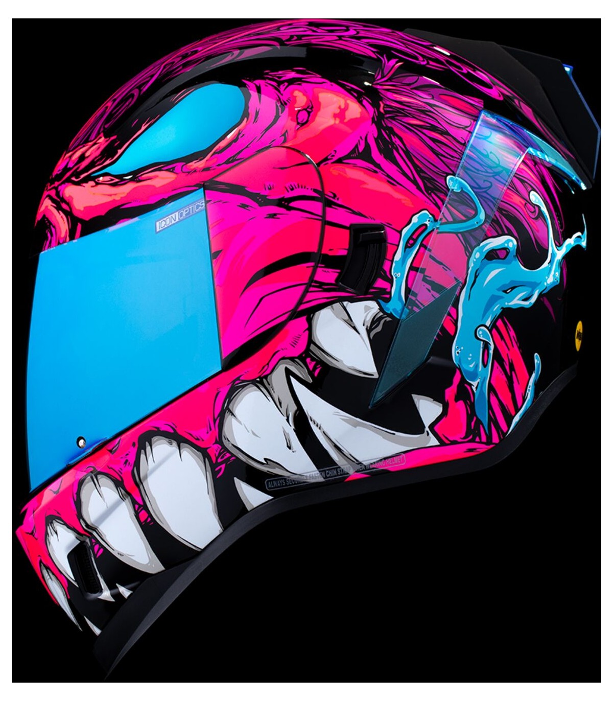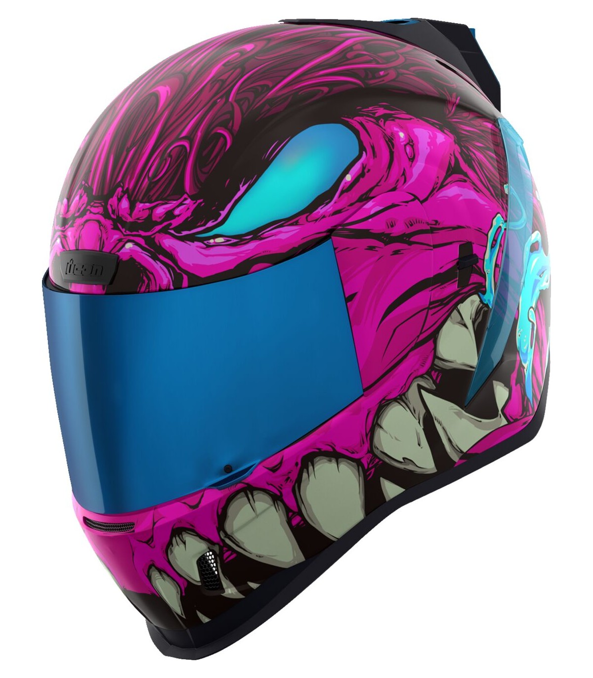 Airform™ Manik'RR MIPS® HelmetContinuous venting systemFog-free ICON Optics™ Shield with Rapid-Release™ SystemInjection molded polycarbonate shell for strengthInternal airflow geometrySculpted neck rollProlock™ positive shield locking systemRemovable molded breath deflectorThe Dropshield™ visor must only be used while the main face shield is in the fully closed positionInternal Dropshield™ with exterior switchRemovable Hydradry™ 3-piece moisture wicking linerInternal speaker pockets work with ICON's R.A.U. Bluetooth deviceIncludes Dark Smoke DropShield™ and Rubatone Black Speedfin™Includes Clear & Blue RST Optics™ Shields
