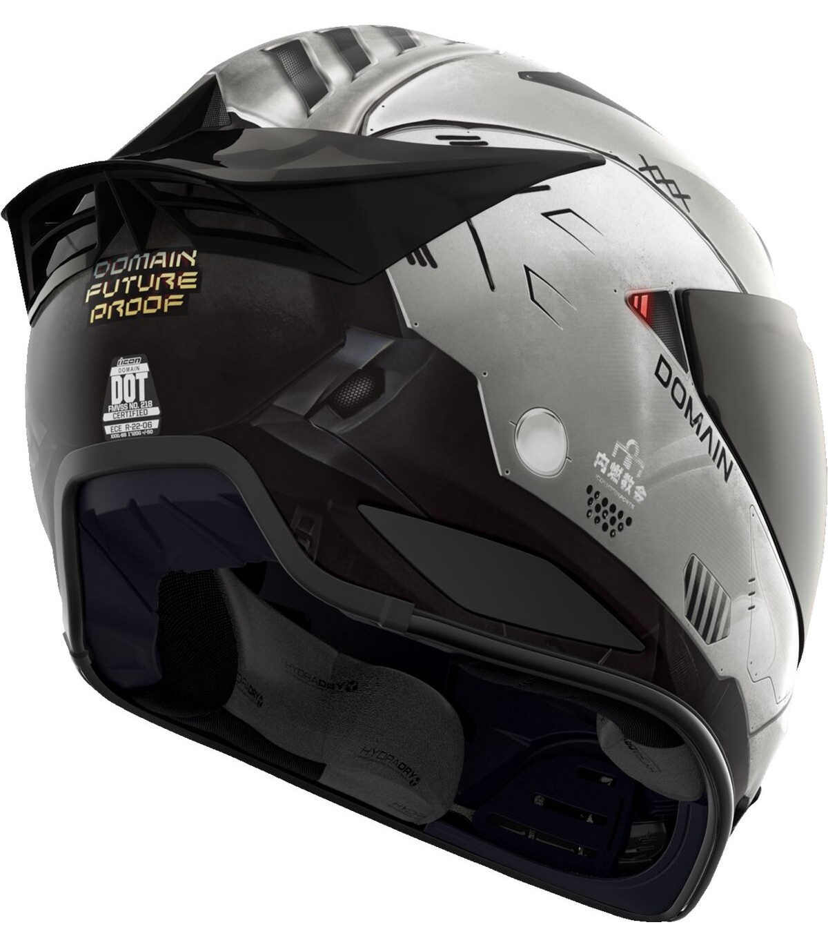 Domain™ Future Proof HelmetHandcrafted FRP shell for optimum strength with minimized weightInternal airflow geometryRemovable molded breath deflectorFog-free Domain™ Shield with Rapid-Release™ SystemContinuous venting systemSculpted neck rollRemovable Hydradry™ 3-piece moisture wicking linerRemovable chin-curtainIncludes Clear and Dark Smoke Domain™ shieldsIncludes Dark Smoke Domain OTT Spoiler™Upgradeable to HelmLink™ Bluetooth® communication system (sold separately)