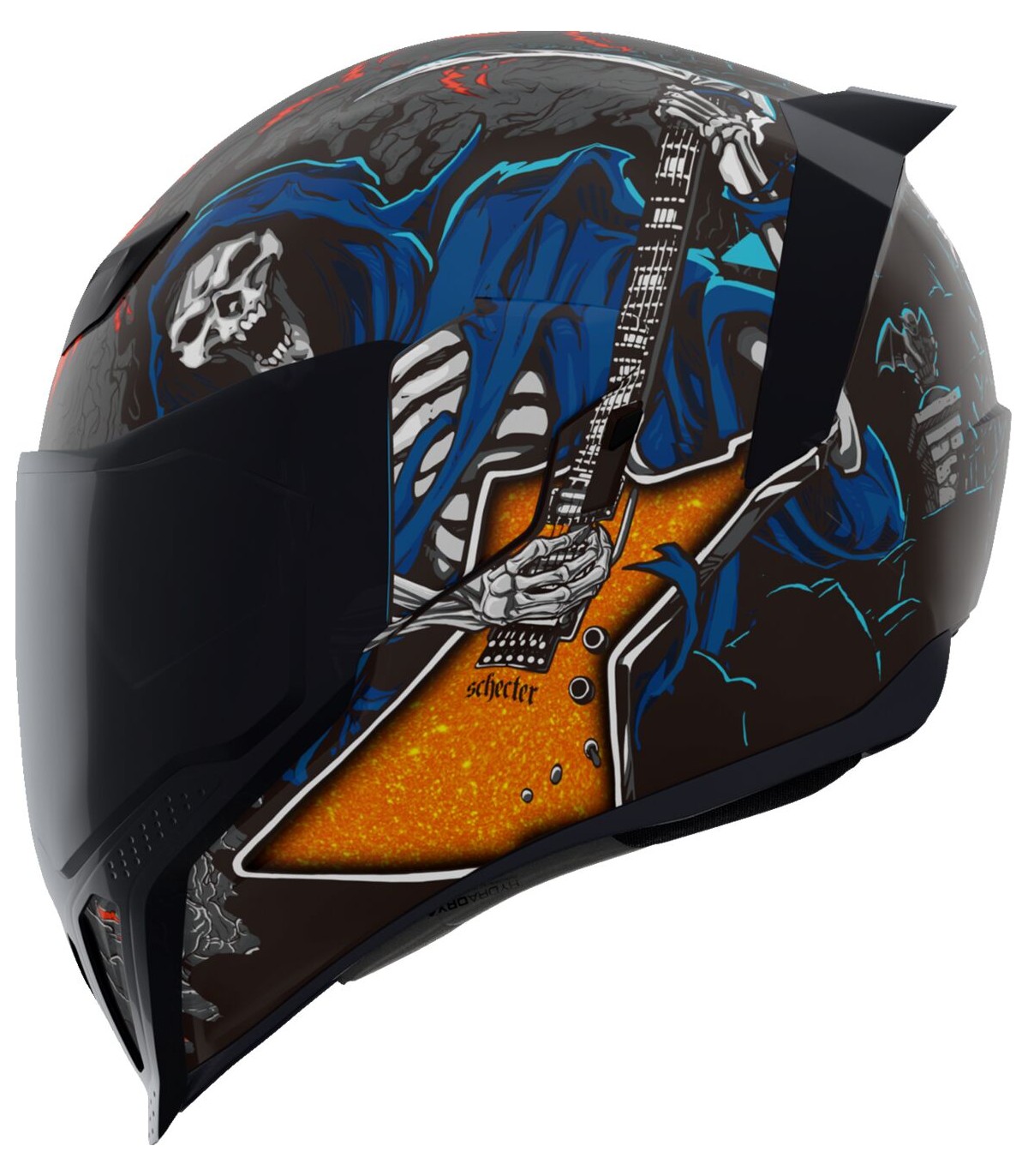 Airflite™ Trick or Street 4 HelmetQuick-change Fog-Free Fliteshield™ with side platesMultiple oversized intake and exhaust portsRemovable Hydradry™ moisture wicking linerRemovable molded breath deflector and chin curtainInjection molded polycarbonate shell for strengthFog-Free Dropshield™ with exterior switchInternal speaker pockets work with ICON's R.A.U. Bluetooth deviceThe Dropshield™ visor must only be used while the main face shield is in the fully closed positionRecessed twin channel supervent cooling system