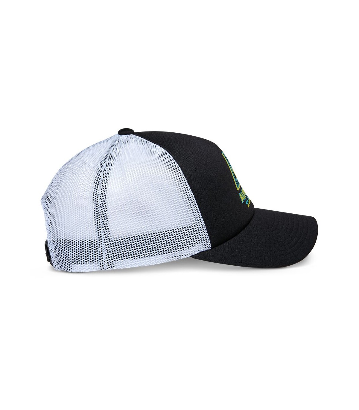 Ayess Trucker HatCurved bill with foam crown. Poly interlock fabric with foam. Front print logo and side flat embroidery. Internal and back labeling. Snap back.100% Polyester.