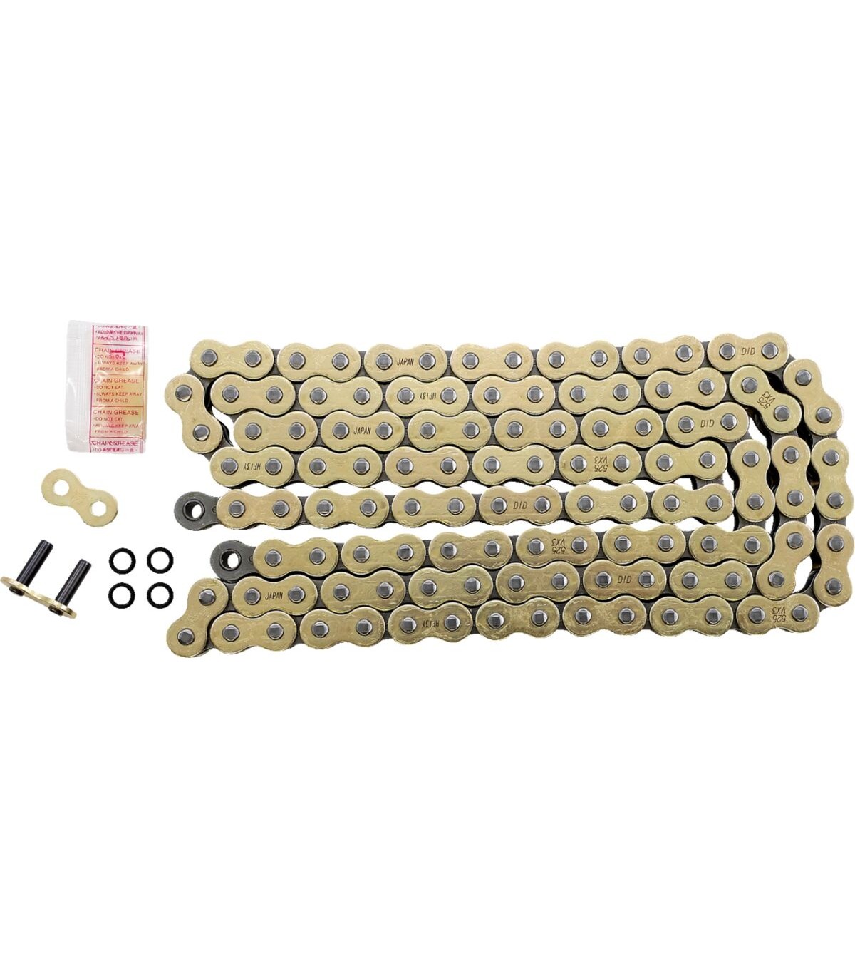 525 VX3 Drive ChainThe 525 VX3 chain has an 8% tensile strength increase due to the hardness of its inner plateWith the X-Ring material upgrade, the 525 VX3 chain has a greatly improved sealing performance and a wear resistance increase of 11%Max cc rating of the 525 VX3 chain is 1000 cc525VX3 boasts a 41% longer chain life than previous O-ring series due to D.I.D's patented X-Ring seal technologyVX Series chain is a great chain upgrade from OEM and is D.I.D's most popular and widely used chain on both on and off-road bikesIncreased rigidity as to reduce flex, which gives you a more responsive and smooth driving experience
