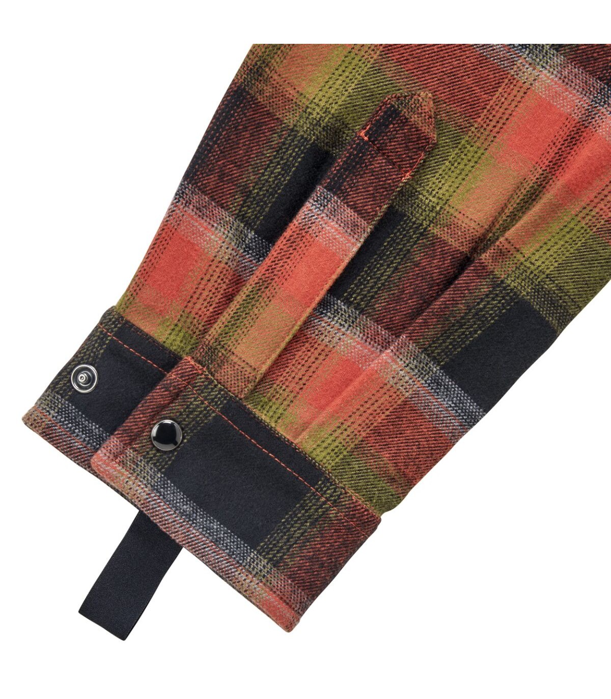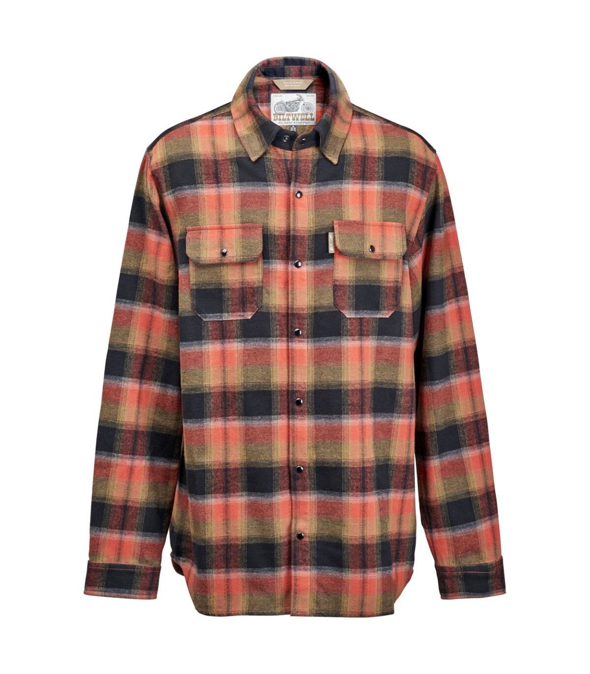 Hi Test Flannel ShirtComfortable 6.5 ounce 100% heavyweight cotton.Snaps on placket, cuffs, collar and pocket flaps is plated stainless-steel.Black pearl snap detailing featured on plaid colorways.Collar tips have hidden snaps to eliminate flapping.Elastic thumb loops to keep sleeve cuffs pulled down over wrists.Chest pocket flap has discrete slot for easy storing of glasses.Polyester single-needle, double-needle and overlock stitching throughout.Embroidered interior tags and exterior brand detailing.EU: Comfortable 184,27 gsm 100% heavyweight cotton.