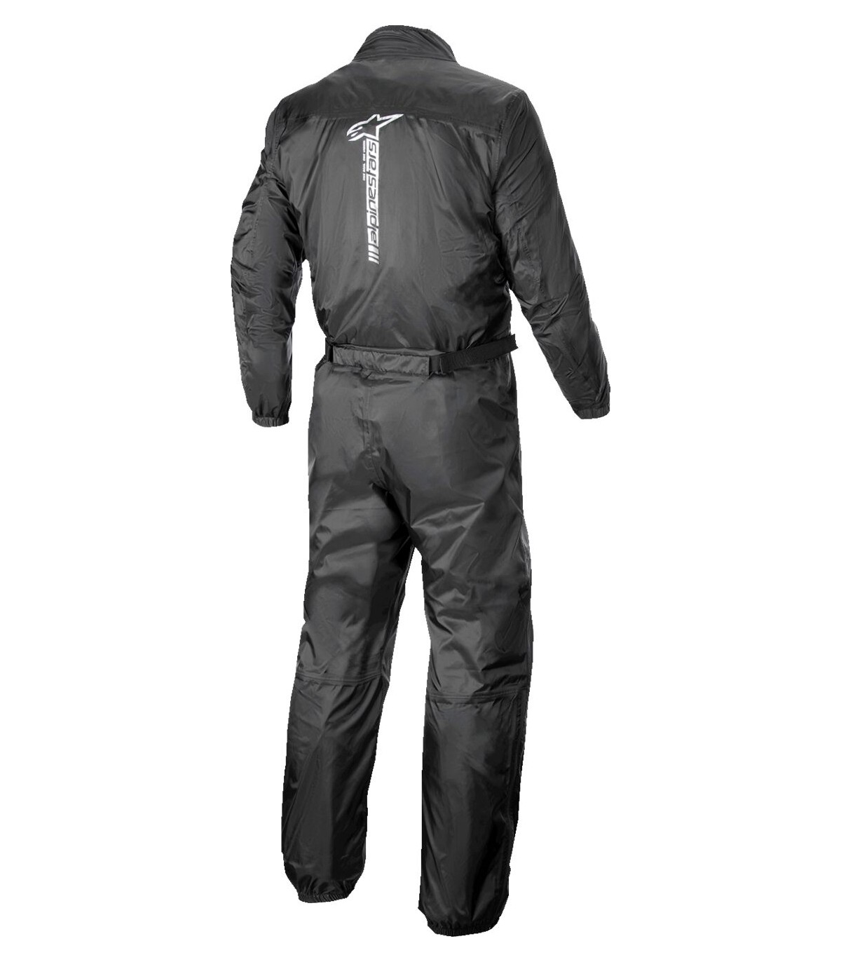 Hurricane v2 RainsuitVersatile waterproof suit designed to deliver optimal protection and comfort in wet weather riding conditionsPackable design allows the suit to be easily folded and packed into its convenient roll bag to stow away until neededUltra-lightweight - constructed from 100% waterproof with breathable, wind-resistant laminated fabricInner comfort mesh lining on the sleeves, torso and upper thighsLong front double flap, storm closure with internal zipper and top hook-and-loop closure for optimal protection against water Quick, easy entry into the suitElasticated cuffs on arms and legs, and back collar for a tightened closure and the prevention of water entryErgonomic fit on the elbows and knees, designed to provide premium rider comfortReflective Alpinestars Wordmark logos on upper left chest and center of back improves visibility in low light or poor weather conditionsTape-sealed seams for waterproof performanceWaterproof and Breathability Rating: WP: 4,000 mmH2O, BREATHABILITY (MVTR): 6,000 g/m2 (24hours)