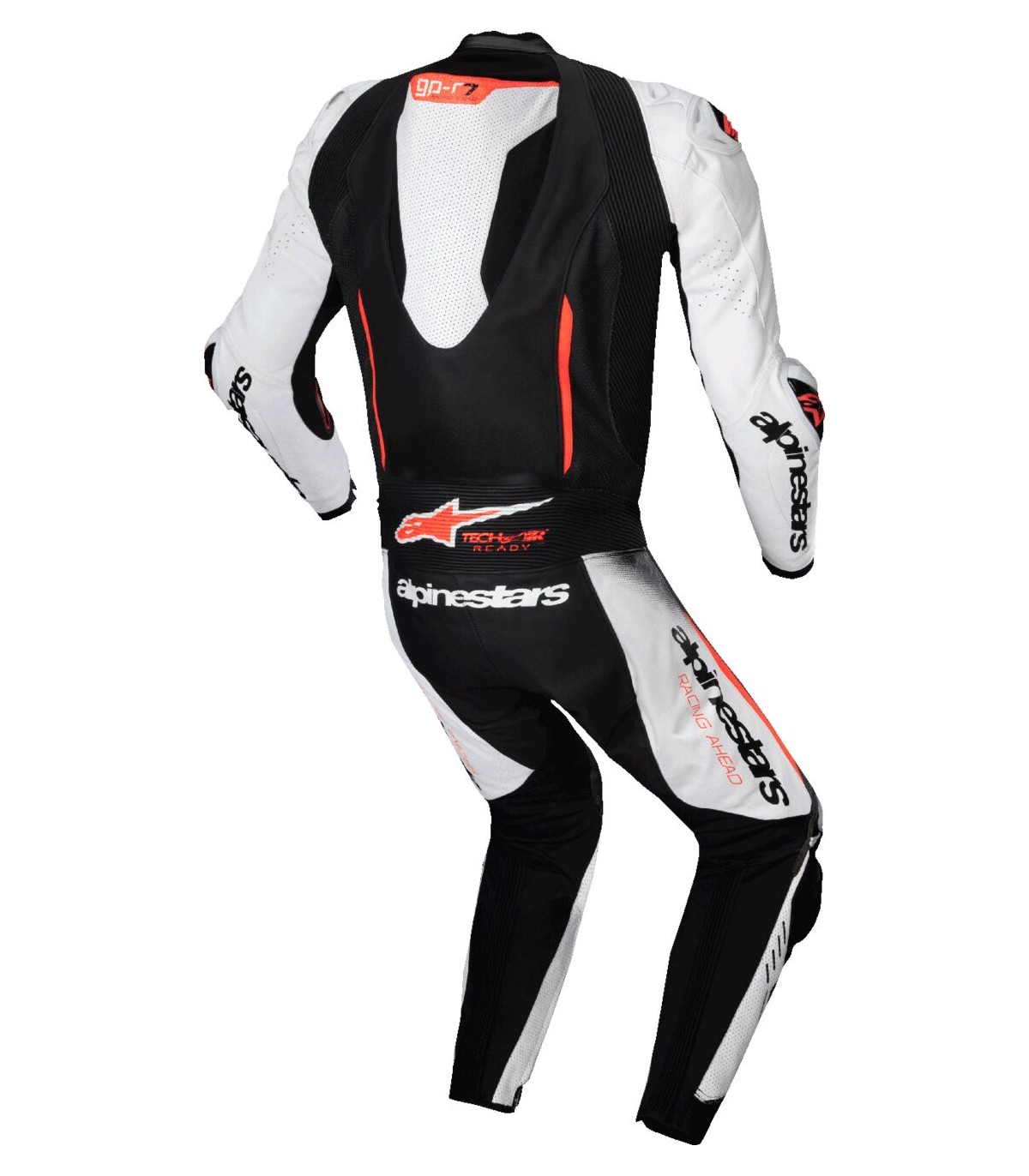 GP-R7 1-PC Leather SuitOptimized for track day riders, racers and advanced road riders, this one-piece leather suit is constructed from premium materials for superior abrasion resistance, flexibility and comfortKey Features: 1.3 mm ‘Race’ spec soft bovine leather construction incorporating dual layers in critical areas for optimized flexibility and abrasion resistanceEquipped with Alpinestars Level 2 Nucleon PLASMA Pro armorAlpinestars, PLASMA is an eco-friendly, sustainable and lightweight impact absorbing material, while its innovative design delivers class-leading levels of adaptability, breathability, and ventilationUltra-adaptive protectors deliver the optimum balance of force dispersion, flexibility and comfortIncorporates Alpinestars ‘Race’ spec Supertech R10 aero hump. Designed and engineered to work in conjunction with Alpinestars Supertech R10 helmet for optimum streamlining and aerodynamic performance with rider tucked in a racing crouchOptimized for use with Alpinestars Tech-Air® Airbag Systems; Tech-Air® 5, Tech-Air® 10 and is Tech-Air® compatible with the new Tech-Air® 7x Airbag SystemUltra-vented design with extensive perforations across the full torso and thighs, with perforated leather panels and localized perforations on the arms for maximum airflow, ventilation and breathabilityPre-curved arms, legs and body, with extended multi-directional leather accordions at the shoulder blades, lower back, and knees for an enhanced ‘Race Fit’Kevlar® grip zone is strategically positioned on the inside of the knee for optimal feel and contact with the bike’s tankProtection: Nucleon PLASMA Pro armor on the elbows, shoulders, knees and shins; eco-friendly and sustainable, this ultra-soft impact absorbing material is a blend of bio-based materials and high-performance polyurethane for superb adaptability and an enhanced performance fit, while still being highly ventilated for superior airflow and breathabilityNucleon PLASMA Pro Knee Protector features an extended design and has been developed using state-of-the-art body mapping technology to achieve the optimum protection coverage to flexibility ratio and specifically anatomically engineered for compatibility with this suitDual density integrated GP DFS shoulder and knee armor, with a DFS RR Elbow slider with replaceable insert, for superior friction controlPlasma armor is available in three different sizes for a precise fitThis suit can also accommodate Nucleon PLASMA Race Chest Level and Level 2 Full Back protectors, both available as optional accessory upgradesThe GP-R 7 Suit is Tech-Air® Compatible with the new Tech-Air® 7x Airbag System and has been specifically designed to accommodate a Tech-Air® 7x Wired LED Display (available as an optional accessory) and is also equipped with a Tech-Air® 10 Bluetooth display pocketTech and Comfort Specs:Seamless cuff and collar construction with suede and padded PU for superior rider comfortBicep zone features a special layering design for improved aerodynamic performance and comfortSuit is equipped with an internal suspender system for ‘off the bike’ upper suit holding for comfort when waiting in the paddock between track sessionsReplaceable GP Knee Sliders are constructed using an exclusive PU compound to deliver exceptional feel and enhanced durability.Zippered detachable comfort liner for convenienceExtended multidirectional leather accordion at shoulder blades, lower back and kneesErgonomic Hyper Resistant Stretch Fabric (HRSF) Stretch inserts at crotch, back leg and inner arms