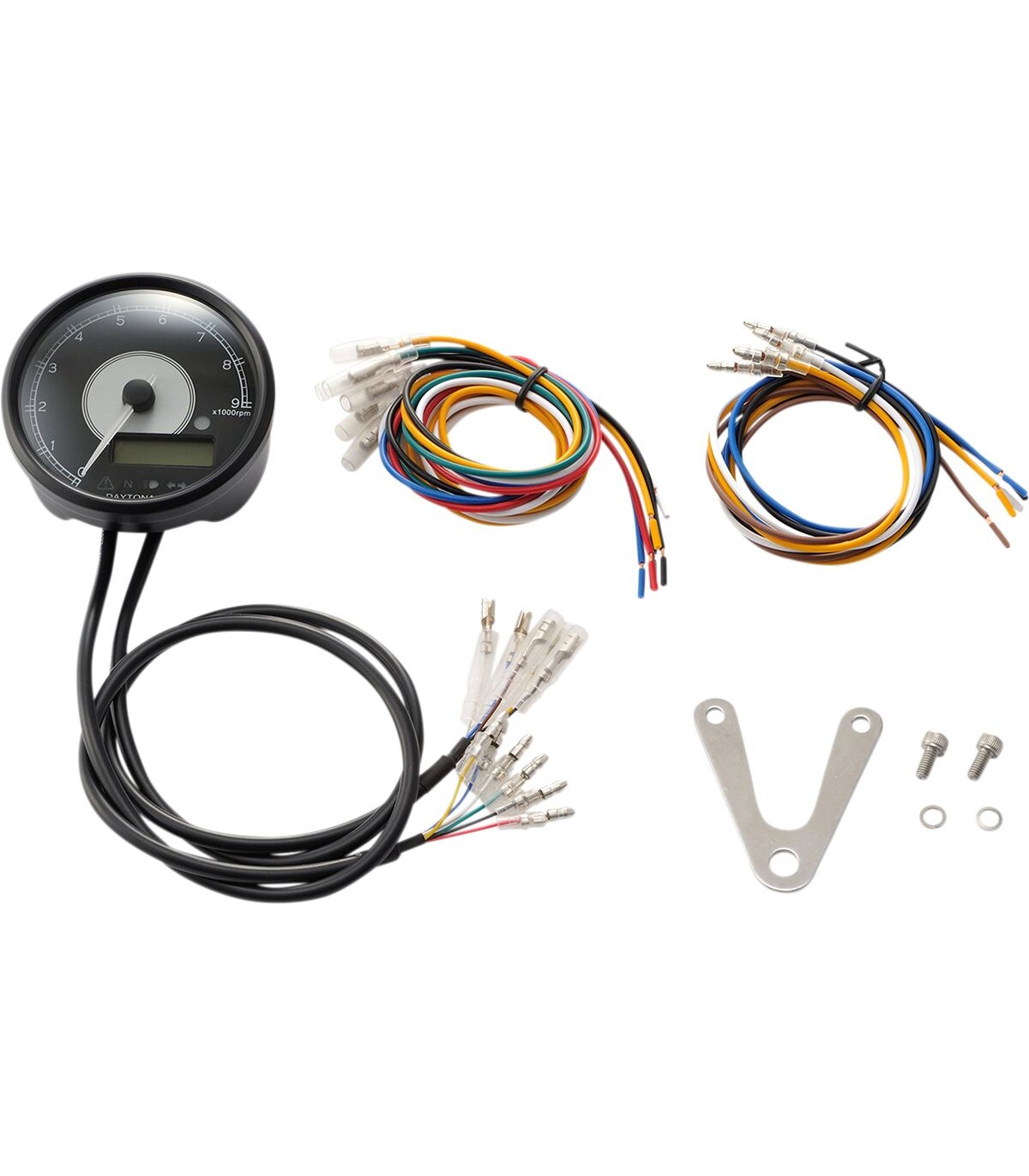 Tachometer* km/h or MPH selectable* Up to 15000 RPM* Voltmeter: 0.0-18.0V* Max. rpm memory and recall* Max. speed memory and recall* Shift-up warning can be set* Odometer(Not resettable): 0.0-99,999.9km(mile)* Speedometer: 0-399km/h (0-260MPH)* Dual Trip Meter(resettable): 0.0-99,999.9km(mile)* Ability to connect to OEM speed sensor, if the vehicle is equipped with an electrical speed sensor* PPR setting selectable from 1P-1r/1P-2r/2P-1r/30P-1r* Power DC9-16 (regular 12V)* V-shaped bracket included* E-marked