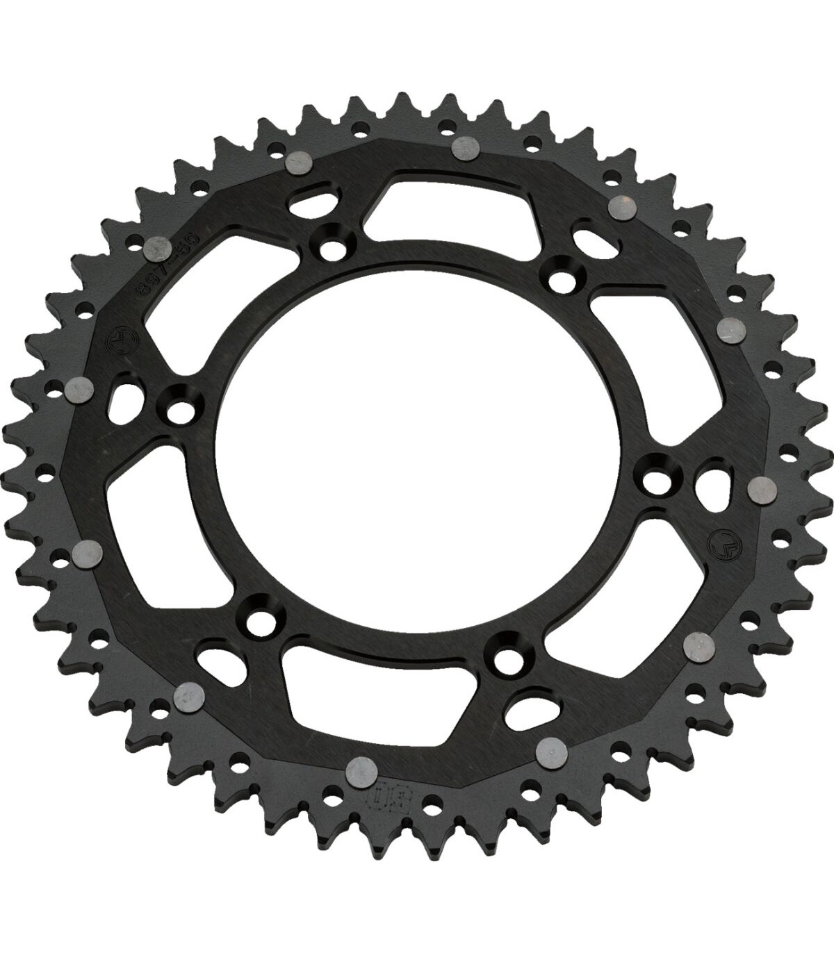 Dual SprocketDesigned to outlast standard aluminum rear sprockets and is much lighter than steel rear sprocketsInner ring is made from 7075 T6 aluminum and the outer ring is made from heavy duty steelSelf-cleaning mud grooves between each tooth to prevent dirt build up