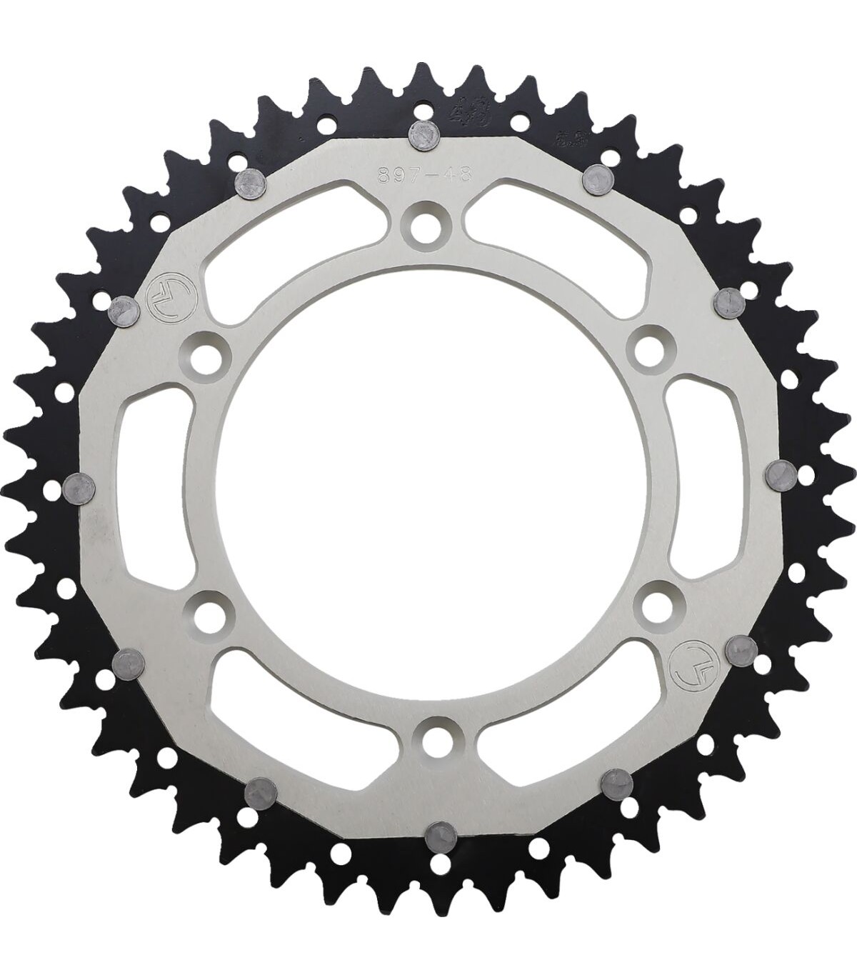 Dual SprocketDesigned to outlast standard aluminum rear sprockets and is much lighter than steel rear sprocketsInner ring is made from 7075 T6 aluminum and the outer ring is made from heavy duty steelSelf-cleaning mud grooves between each tooth to prevent dirt build up