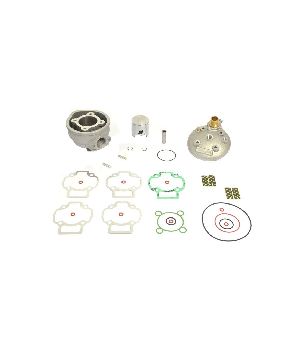 Cylinder KitKit includes aluminum cylinder with nickel-carbide coating designed with larger water jacketsSpecially designed, high performance, hard anodized power valves (cannot use OEM)Forged piston with molybdenum coatingBig Bore Cylinder Kit With Head Ø 47,6 mm, 70 cc, Pin Ø 12 mm, Domed Head Piston