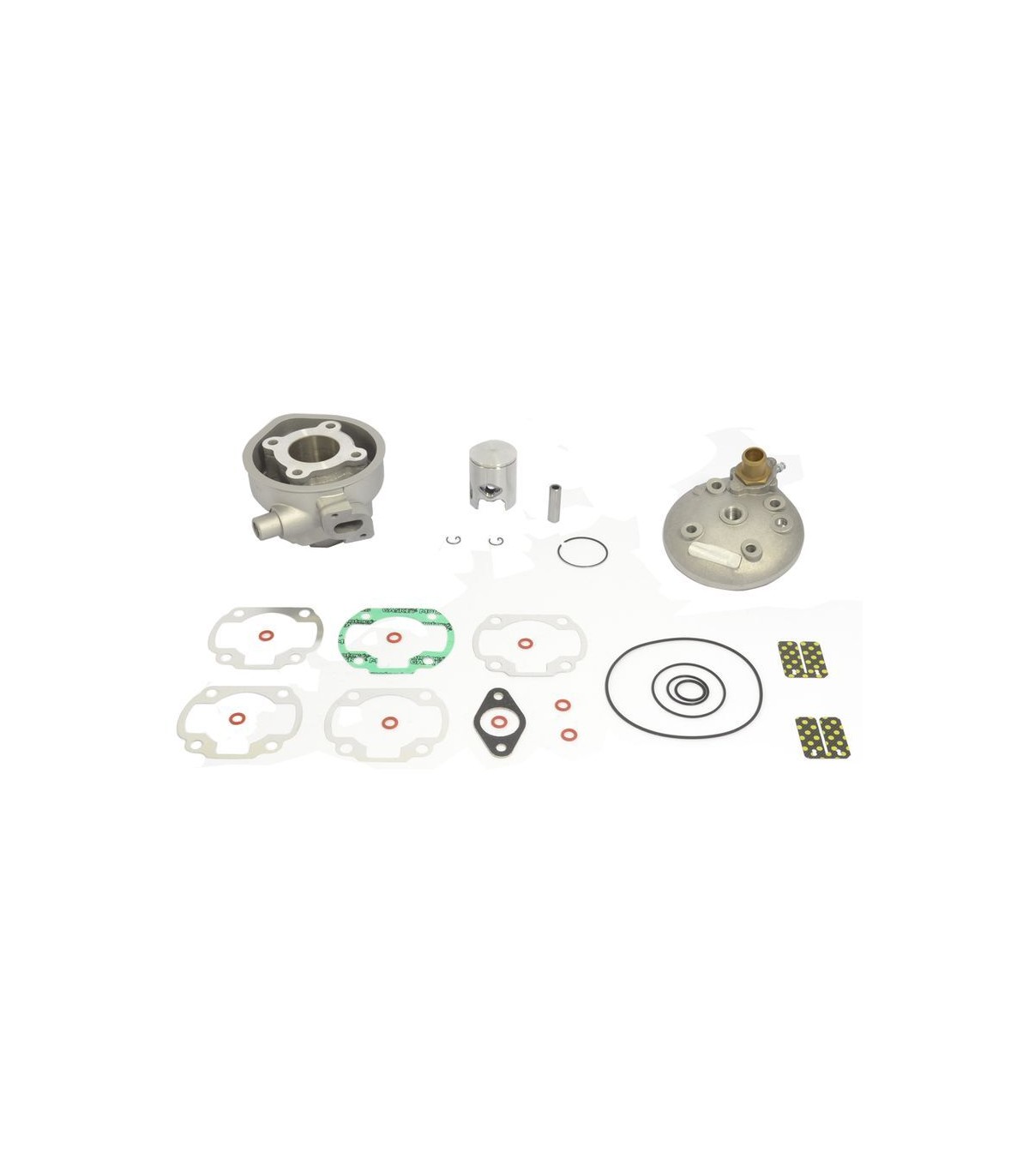 Cylinder KitKit includes aluminum cylinder with nickel-carbide coating designed with larger water jacketsSpecially designed, high performance, hard anodized power valves (cannot use OEM)Forged piston with molybdenum coatingBig Bore Cylinder Kit With Head Ø 47,6 mm, 70 cc, Pin Ø 10 mm, Flat Head Piston