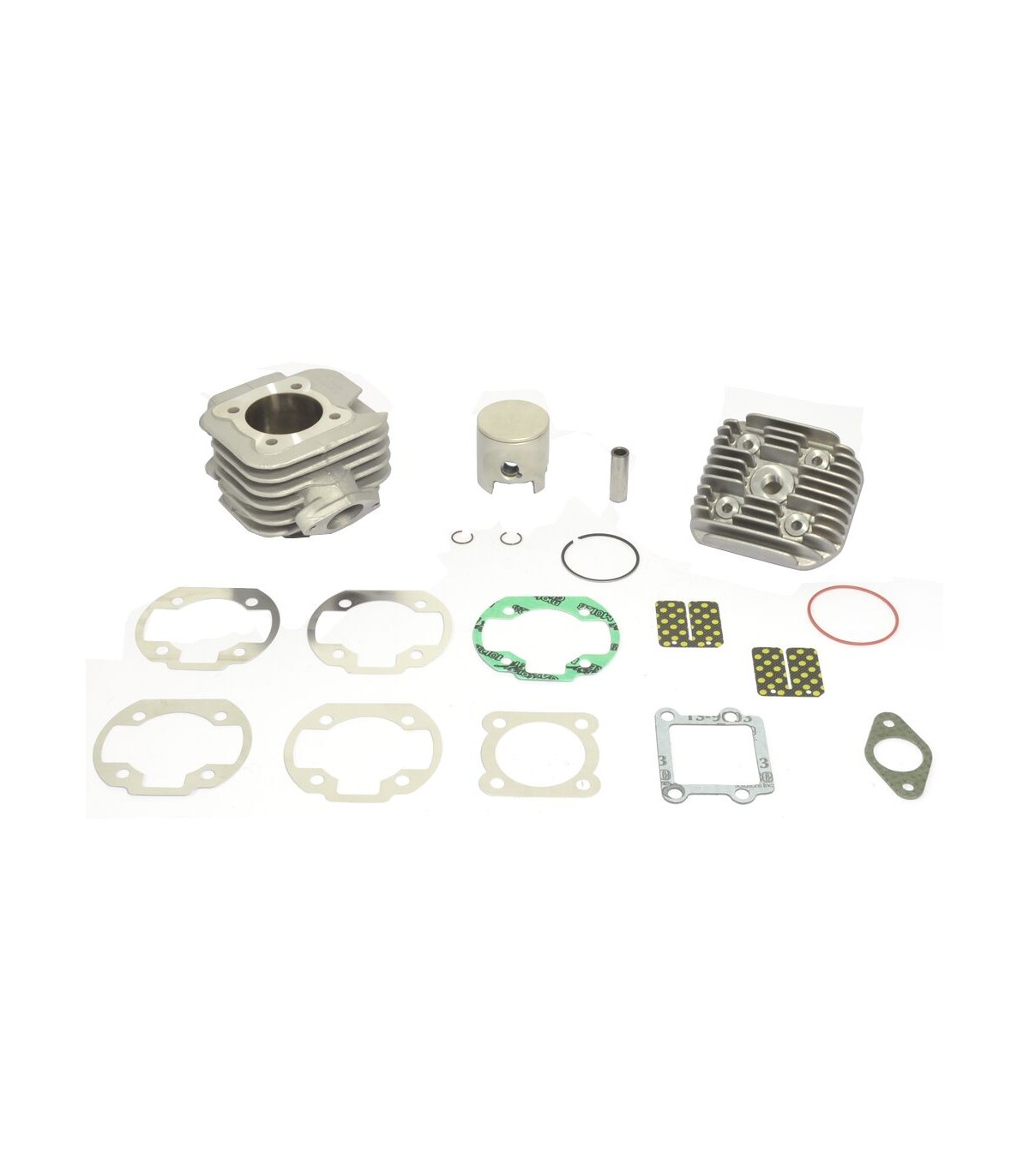 Cylinder KitKit includes aluminum cylinder with nickel-carbide coating designed with larger water jacketsSpecially designed, high performance, hard anodized power valves (cannot use OEM)Forged piston with molybdenum coatingStandard Bore Cylinder Kit With Head Ø 40 mm, 50 cc
