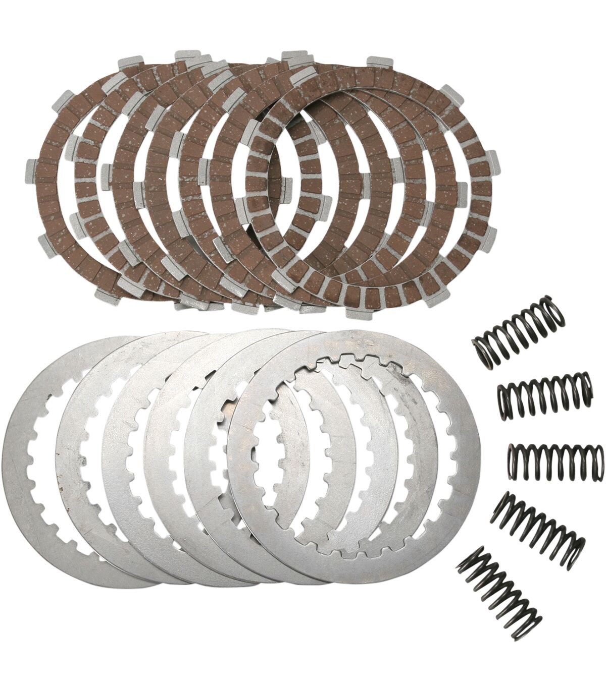 DPKS Clutch Kit with Steel Friction PlatesGet all the performance without all the fade or slipFriction plates are ready to fit - no need to pre-soak in oilDesigned to ensure ultra-smooth power deliveryMore durable than OEM clutch platesHigh-heat friction material for fade-free performanceClutch springs are shot-peened for maximum life, heat-treated and precision-wound using only the finest chrome siliconSprings are individually designed for each application to ensure easy operation and great feel at the leverKits available with or without steel friction platesSteel friction plates are precision-made using exacting tolerancesPlates are heat-treated for maximum lifeWill not muddy or contaminate oilBoth styles of clutch kit include friction plates and springs (unless noted in part specific text)No springs.
