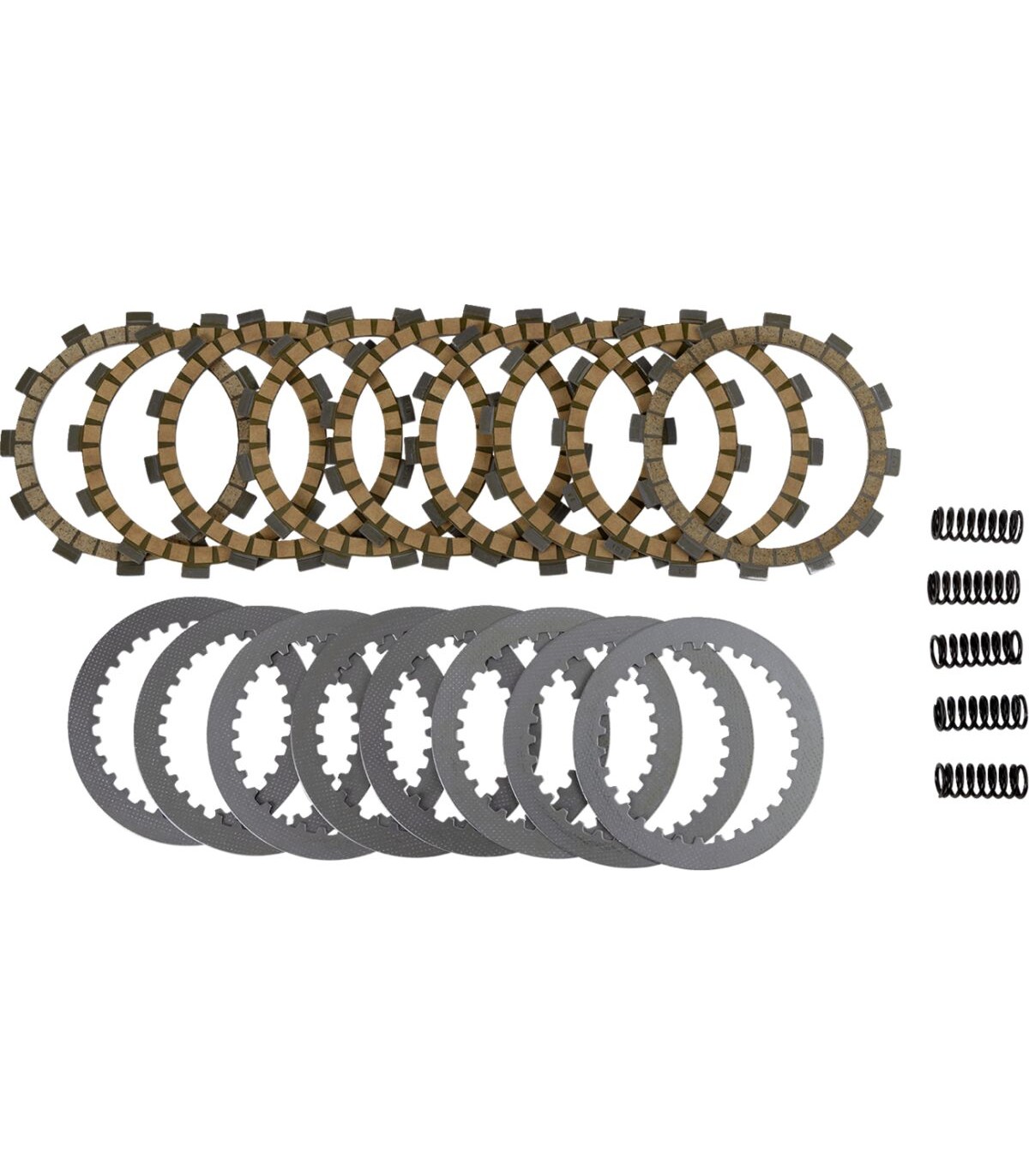 Clutch Plate SetSets contain all friction plates and steels required per application for easy replacementManufactured by the leading OEM factoriesSteel plates offer longevity, durability and the clutch feel of OEMSpecial designed springs are 10% stiffer than OEM to reduce clutch slippage under extreme conditions, resulting in maximum control and instant driveCan be used in combination with all other ProX or OEM clutch components