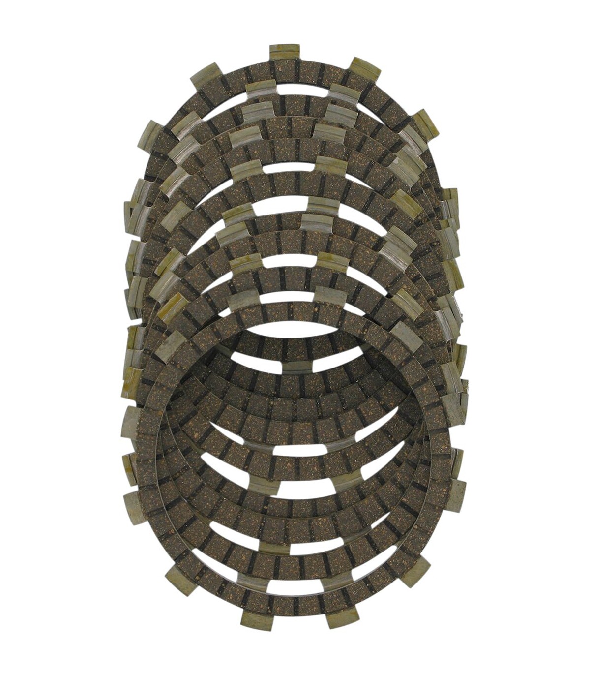 Kit d’embrayage série CK standardMatériel de l'embrayage à base de liège imprégné de particules d'aluminium pour augmenter la résistance à l'usure et aux températures élevéesUne construction comprimée évite l'expansion et le décrochage de l'embrayageIdéal pour motos urbaines/de sport/de touring d'usage généralLe kit ne comprend que le jeu complet de disques garnis pour moteurÀ utiliser avec l’huile pour transmission recommandée par le fabricant