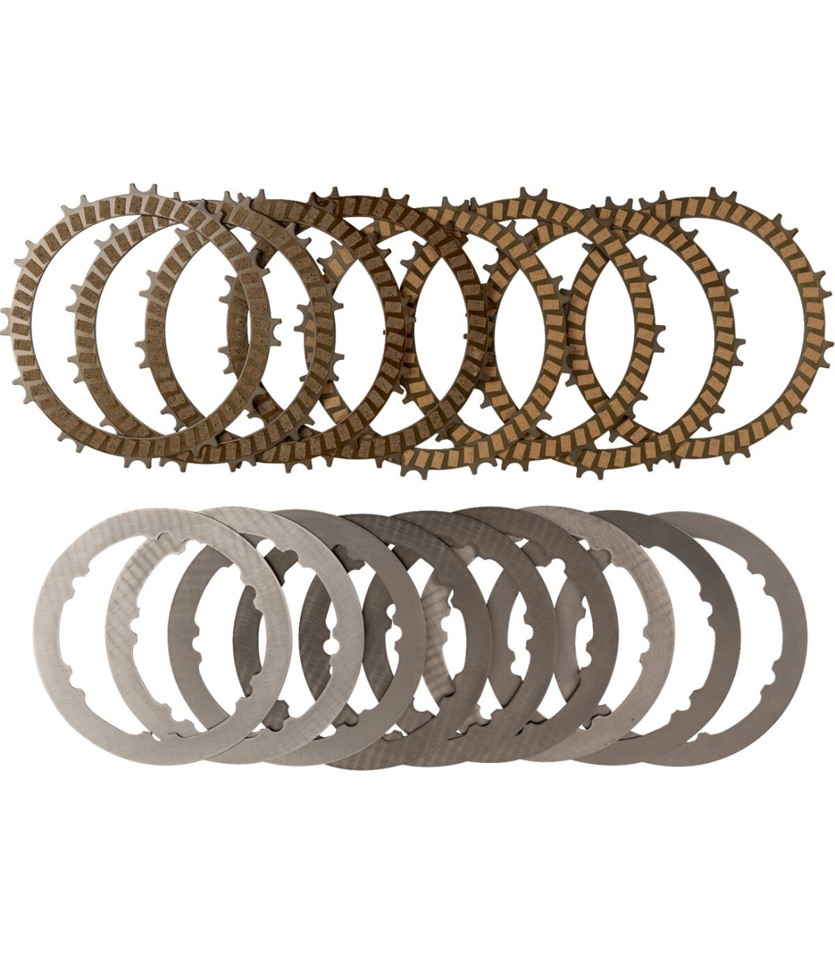 Clutch Plate SetSets contain all friction plates and steels required per application for easy replacementManufactured by the leading OEM factoriesSteel plates offer longevity, durability and the clutch feel of OEMSpecial designed springs are 10% stiffer than OEM to reduce clutch slippage under extreme conditions, resulting in maximum control and instant driveCan be used in combination with all other ProX or OEM clutch components.