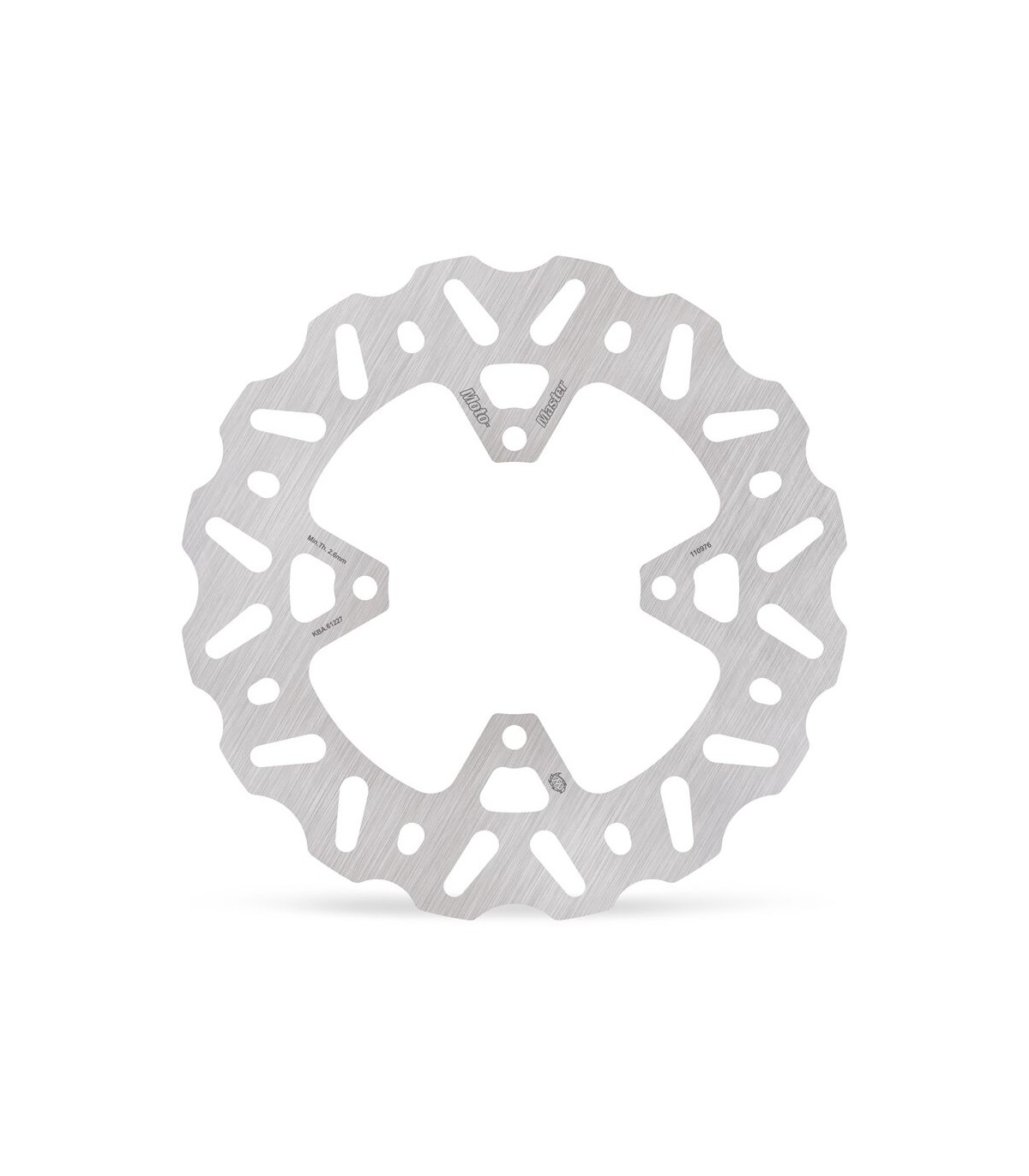Offroad Nitro Series Brake DiscAttractive design, race-proven quality and competitive pricing make Nitro the perfect OEM replacementLike Moto-Master's Flame discs, all Nitros are made of special hardened, low-carbon stainless steel for optimal durability and maximum stopping powerDesign provides maximum heat dispersion while the carefully positioned cooling slots ensure optimal brake pad cleaning action in all conditionsDesigned and engineered by Moto-Master to meet the demands of modern Motocross and Enduro racingBrake Rotor Fixed Nitro Rear, KTM, Husqvarna, Gas Gas
