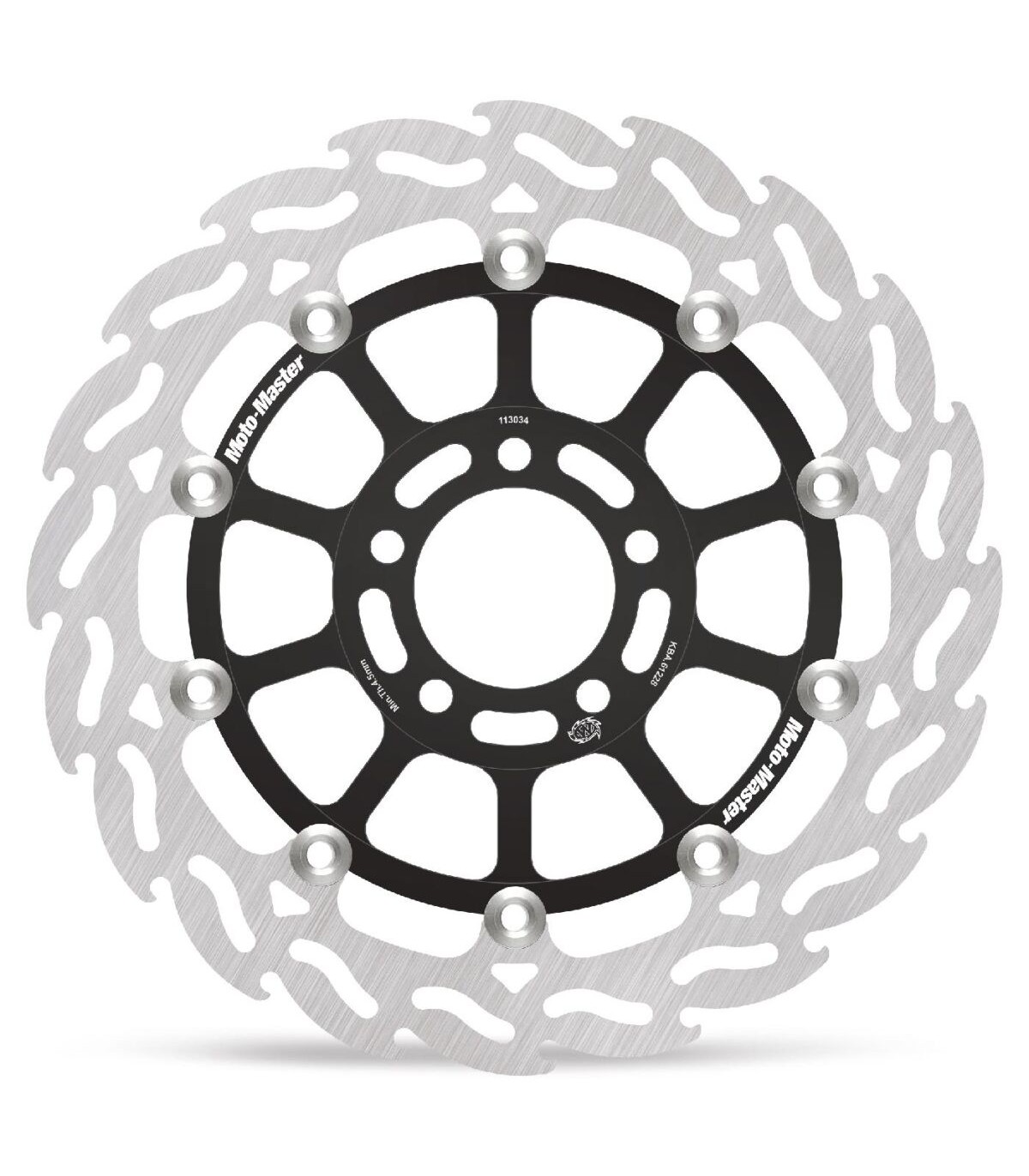 Flame Series Floating RotorThe unique Flame design offers optimal cooling and unsurpassed smooth and predictable braking action which allows you to brake harder.Flame Road Discs are also available in a Racing version for professional racing and track day use.For best performance we recommend using Moto-Master brake pads.Brake Rotor Floating Flame Alu Black