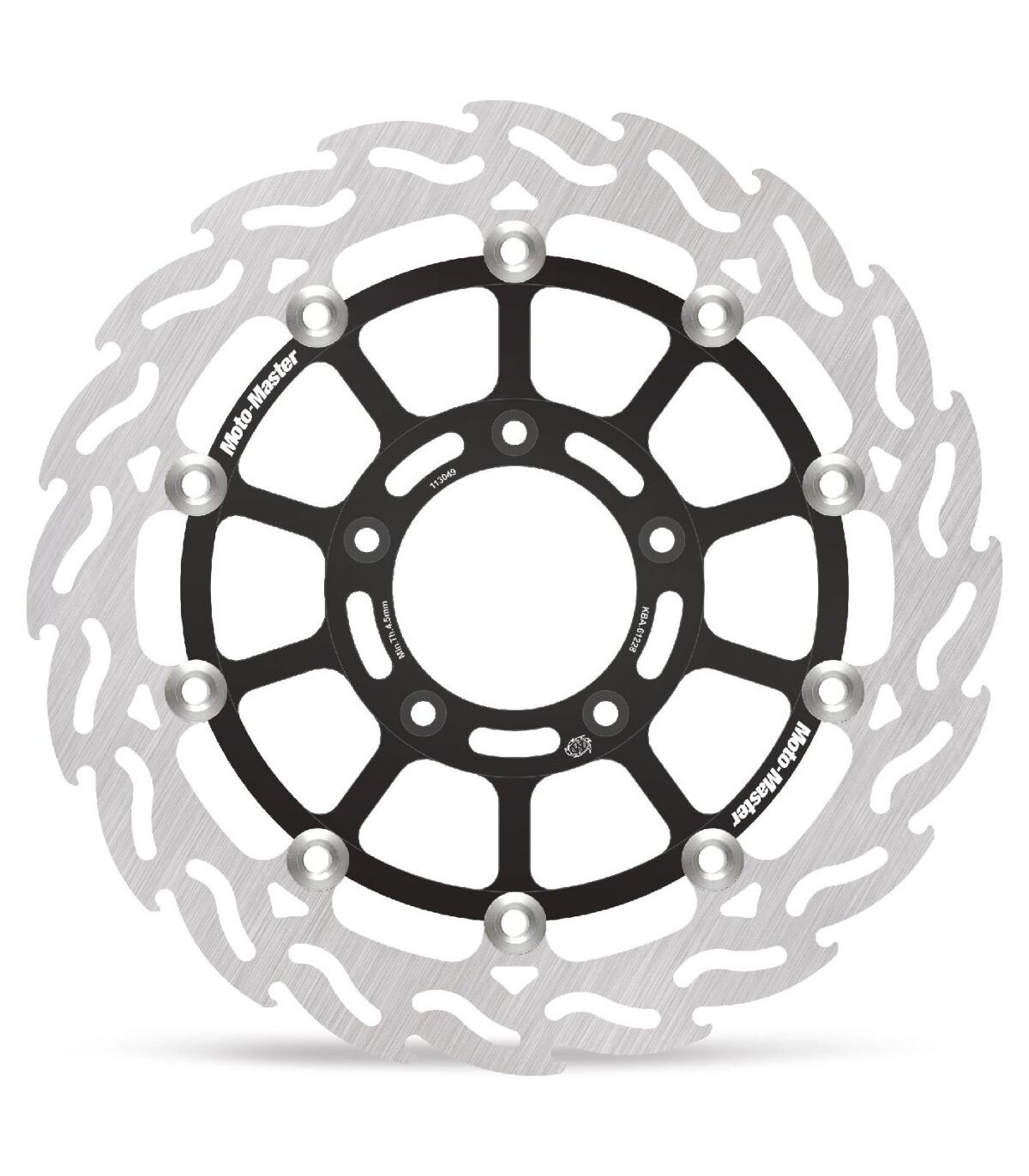 Flame Series Floating RotorThe unique Flame design offers optimal cooling and unsurpassed smooth and predictable braking action which allows you to brake harder.Flame Road Discs are also available in a Racing version for professional racing and track day use.For best performance we recommend using Moto-Master brake pads.Brake Rotor Floating Flame Alu Black