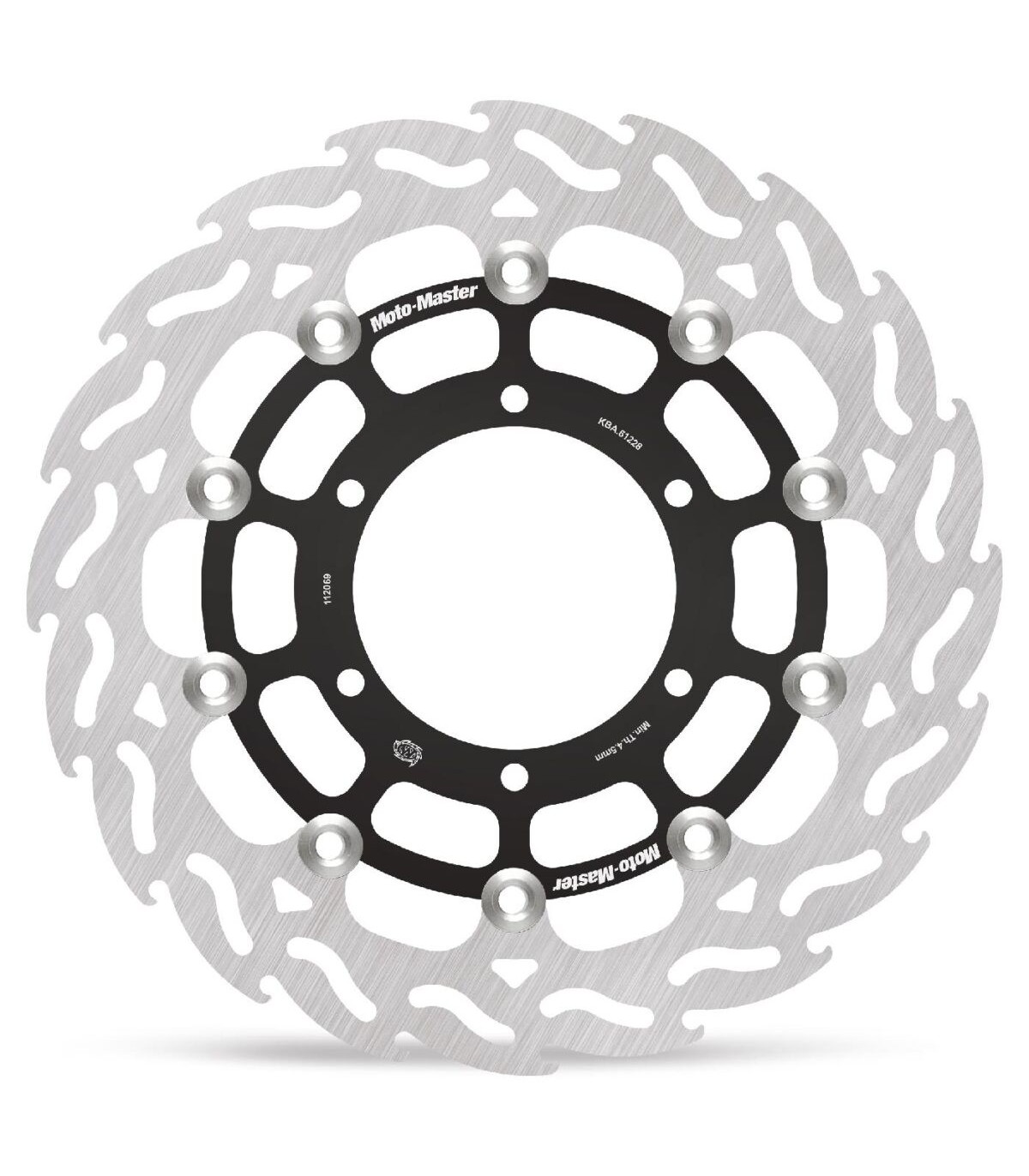 Flame Series Floating RotorThe unique Flame design offers optimal cooling and unsurpassed smooth and predictable braking action which allows you to brake harder.Flame Road Discs are also available in a Racing version for professional racing and track day use.For best performance we recommend using Moto-Master brake pads.Brake Rotor Floating Flame Alu Black