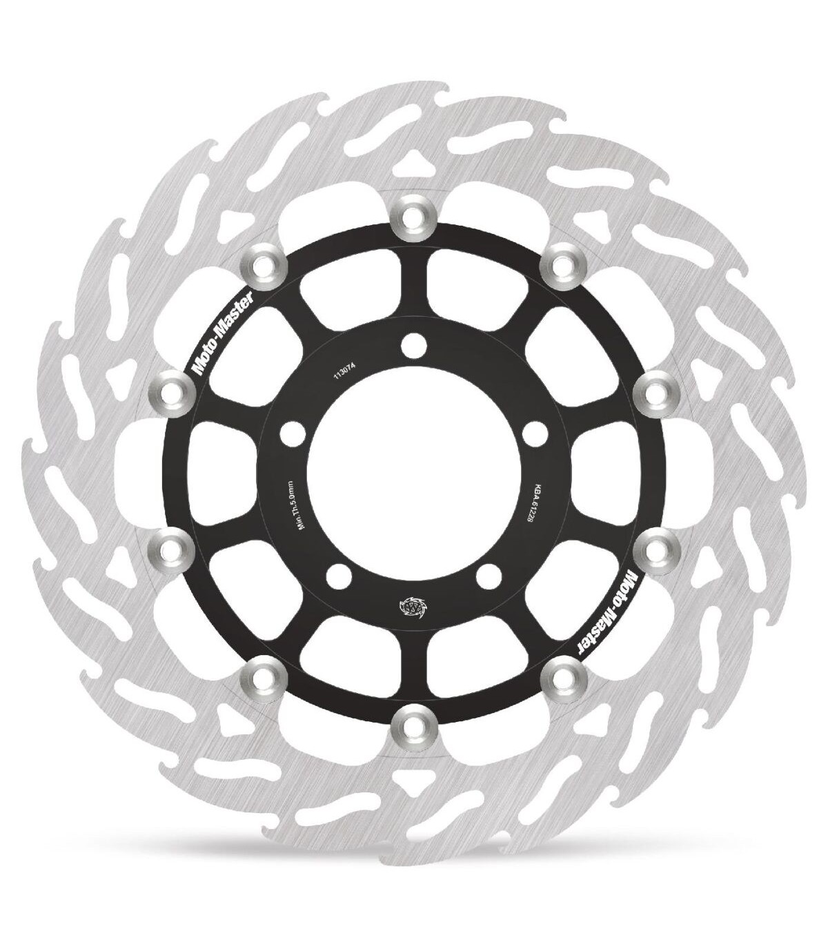 Disque de frein de course série FlameLe design Flame unique offre un refroidissement optimal et un freinage souple et prévisible vous permettant de freiner plus fort.La taille et l'emplacement exacts des trous d'évent assurent une dissipation régulière de la chaleur dans des conditions de stress thermique, tout en préservant la propreté de la surface de contact de la plaquette de frein.Épaisseur du disque : 5,5 mmLa partie extérieure découpée au laser et meulée avec précision est fixée à un support en aluminium taillé dans la masse usiné CNC de qualité aéronautique qui est anodisé noir et marqué au laser.Des flotteurs en acier inoxydable légers au nouveau design viennent parfaire l'ensemble
