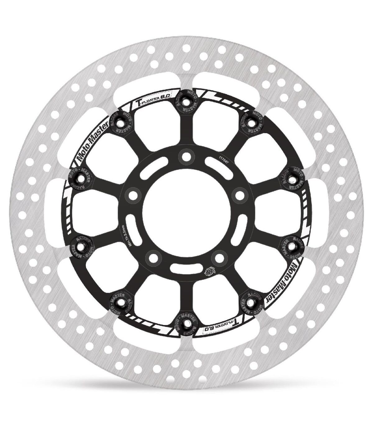 Disque de frein T-Floater série HALOLa conception de l'anneau extérieur HALO assure une dissipation régulière de la chaleur dans des conditions de stress thermique, tout en préservant la propreté de la surface de contact de la plaquette de frein.L'épaisseur de l'anneau extérieur est de 6,0 mm (320 mm) et comporte un trou de refroidissement supplémentaire sur le périmètre extérieur.La partie extérieure découpée au laser et meulée avec précision est fixée à un support en aluminium taillé dans la masse usiné CNC de qualité aéronautique qui est anodisé noir et marqué au laser.Le système T-Floater offre un comportement de flottement contrôlé précis même dans les conditions extrêmes de courseLe design sophistiqué T-Floater permet de résister à de grandes charges mécaniques et de réduire l'usure à un minimumLe système T-Floater est léger grâce à des flotteurs en aluminium anodisé dur spécialement conçus.Brake Rotor Halo T-Floater, Outside Diameter 320mm, Inner Diameter 80mm, Thickness 6,0mm, Pitch 101,5mm
